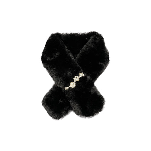 Faux Fur Leopard Scarf with Rhinestone Decor