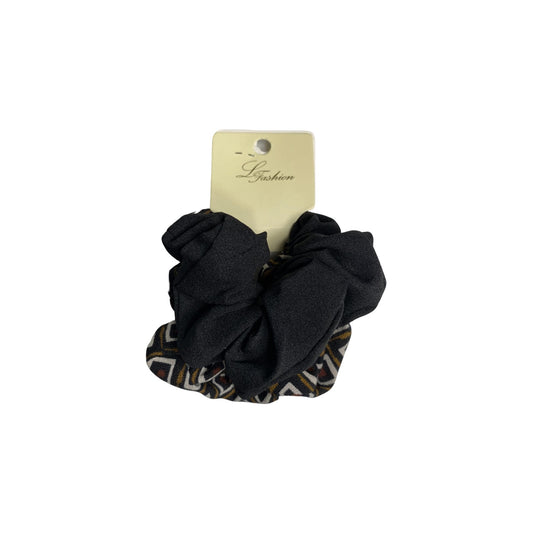 Melody Solid Black & Printed Hair Scrunchies Set of 2