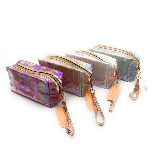 Cosmetic Bag Metallic Confetti Lip Cosmetic Bag w/ Wrist Strap