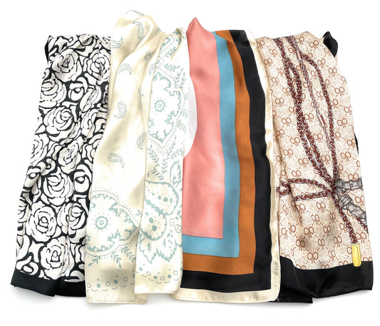 Silk Feel Fashion Scarf Prints Large Square Satin Headscarf 27.5" x 27.5"