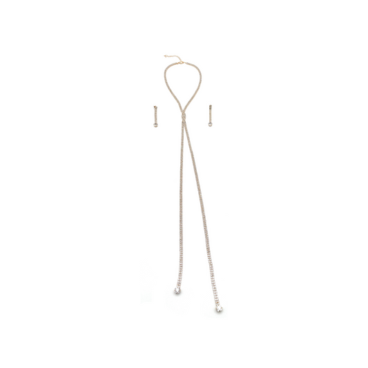 Two Line Rhinestone Twist Y Necklace with Earrings