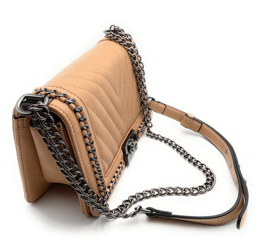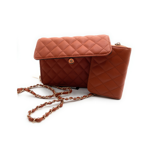 QUILTED CHAIN LINK CHIC CROSSBODY PURSE WITH MATCHING WRISTLET WALLET