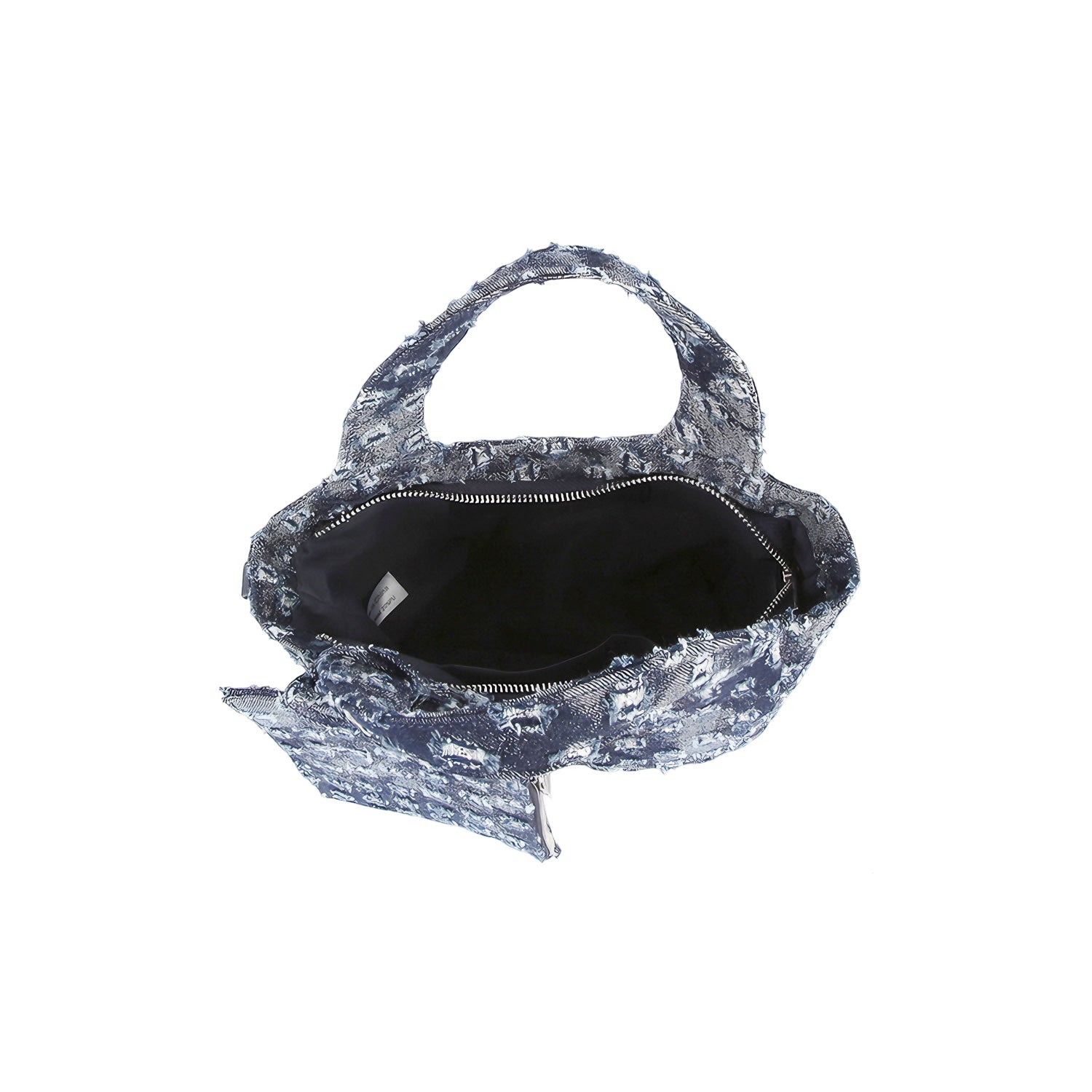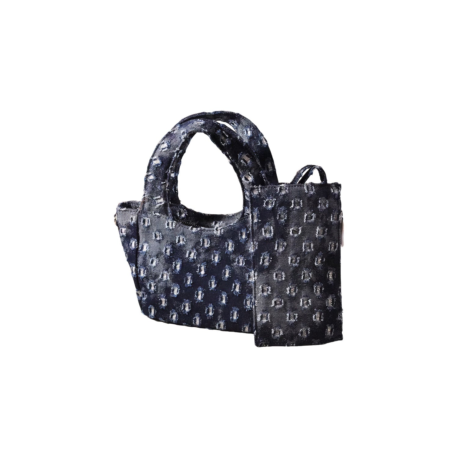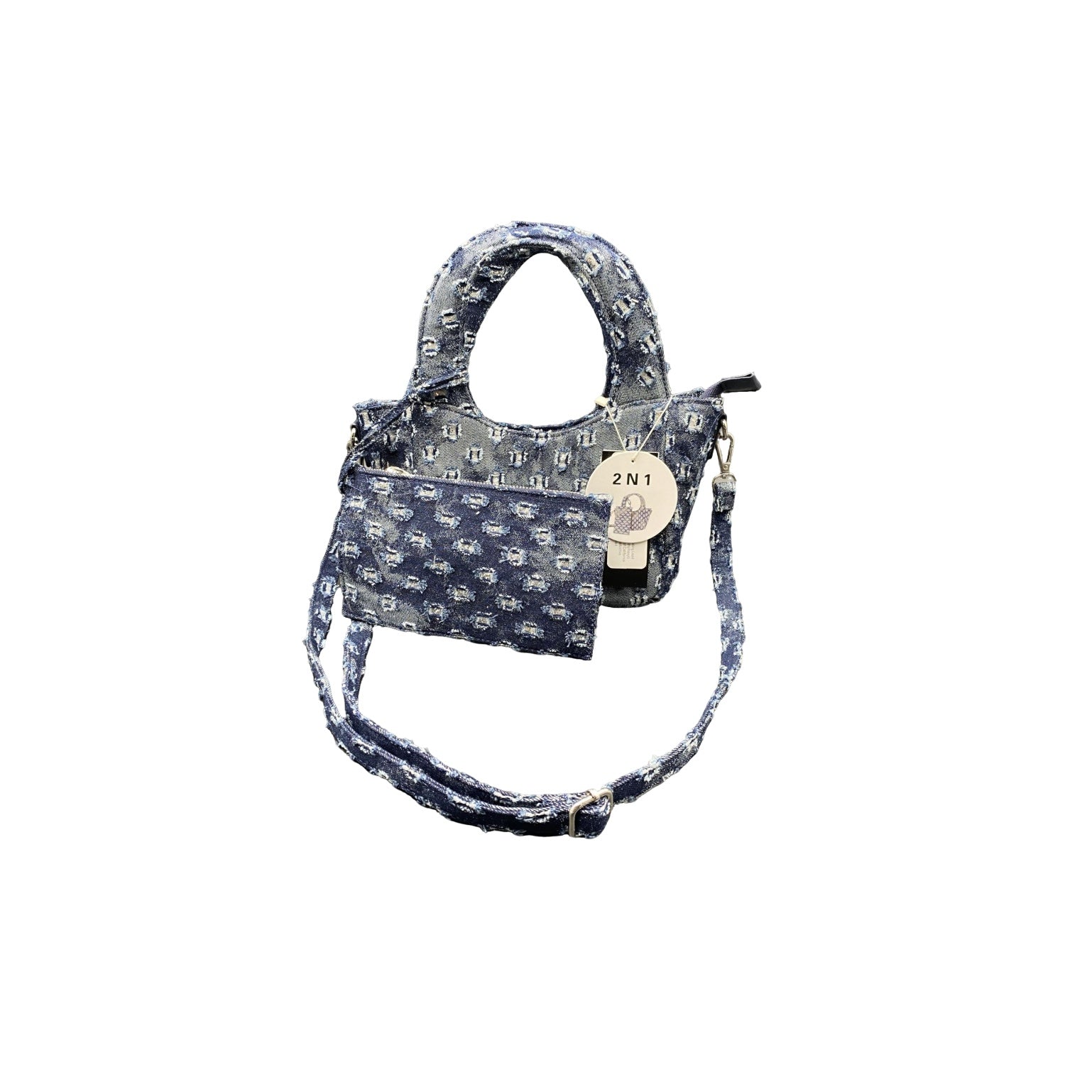 Denim Textured Handle & Strap Bag With Matching Clutch Bag