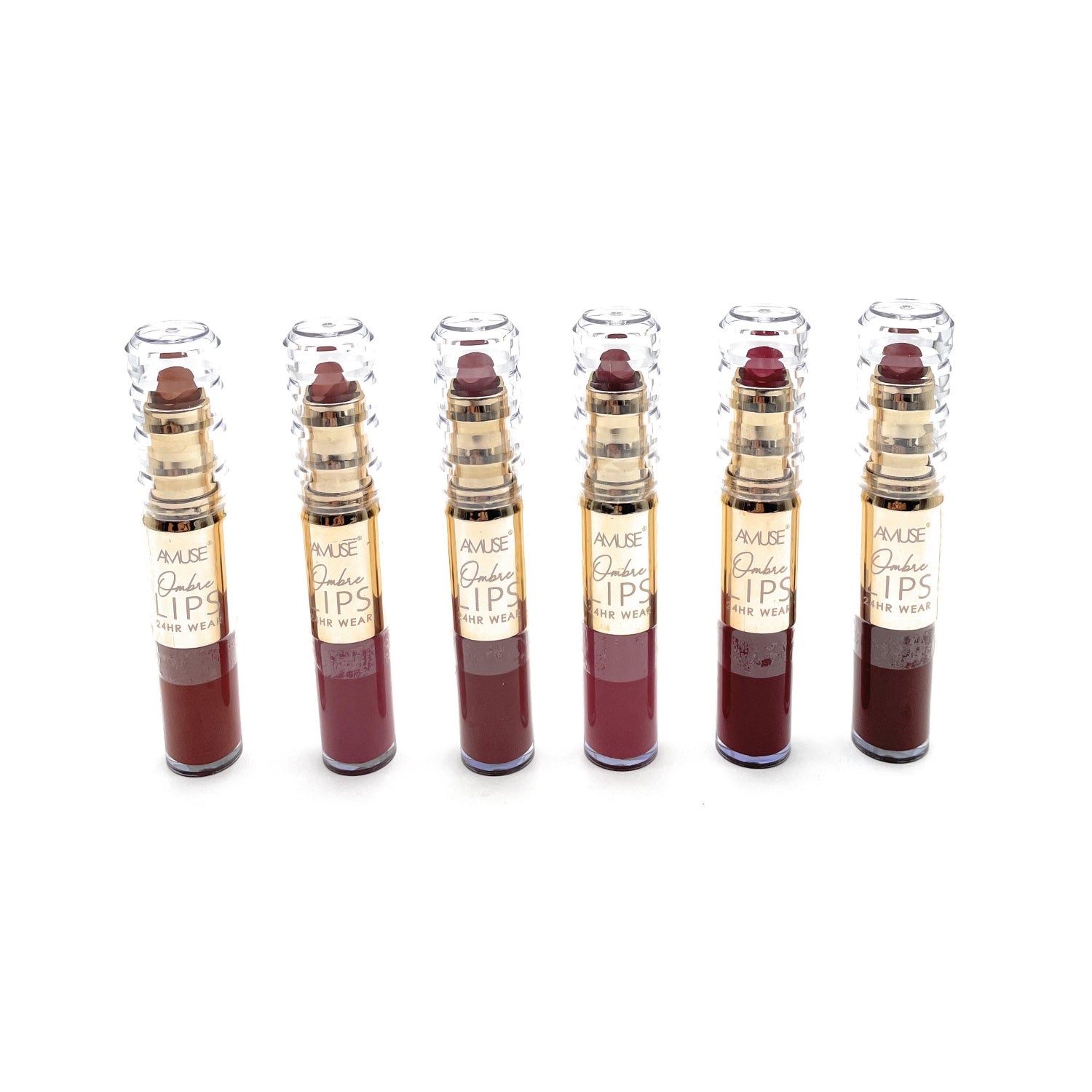 Get ready to make a bold statement with Amuse - Ombre Lips! Our 24-hour wear formula allows you to create long-lasting ombre lip looks that will turn heads. So go ahead, have some fun and rock your ombre lips with confidence, knowing they'll stay in place all day.