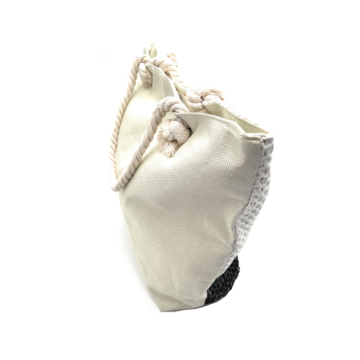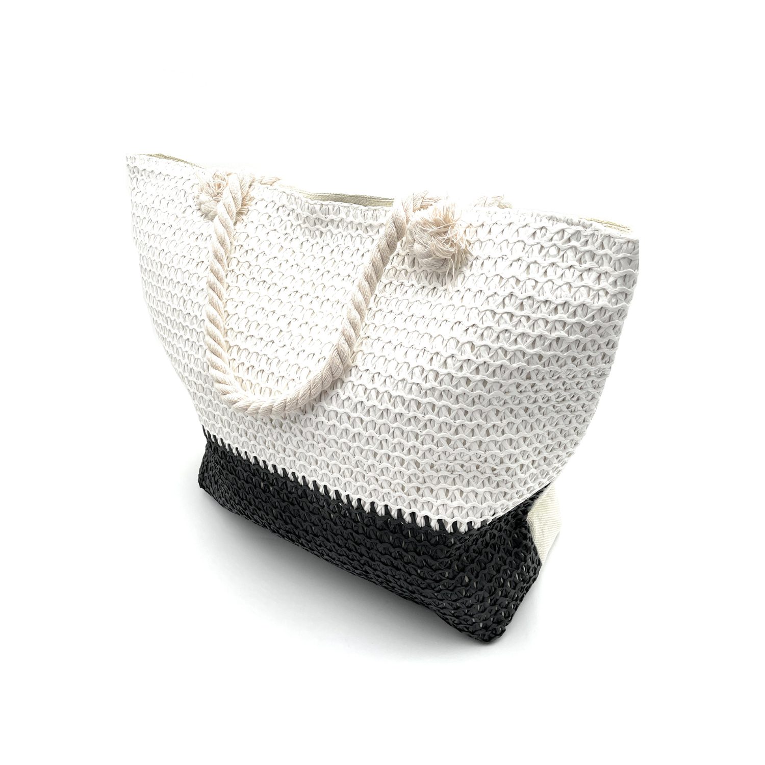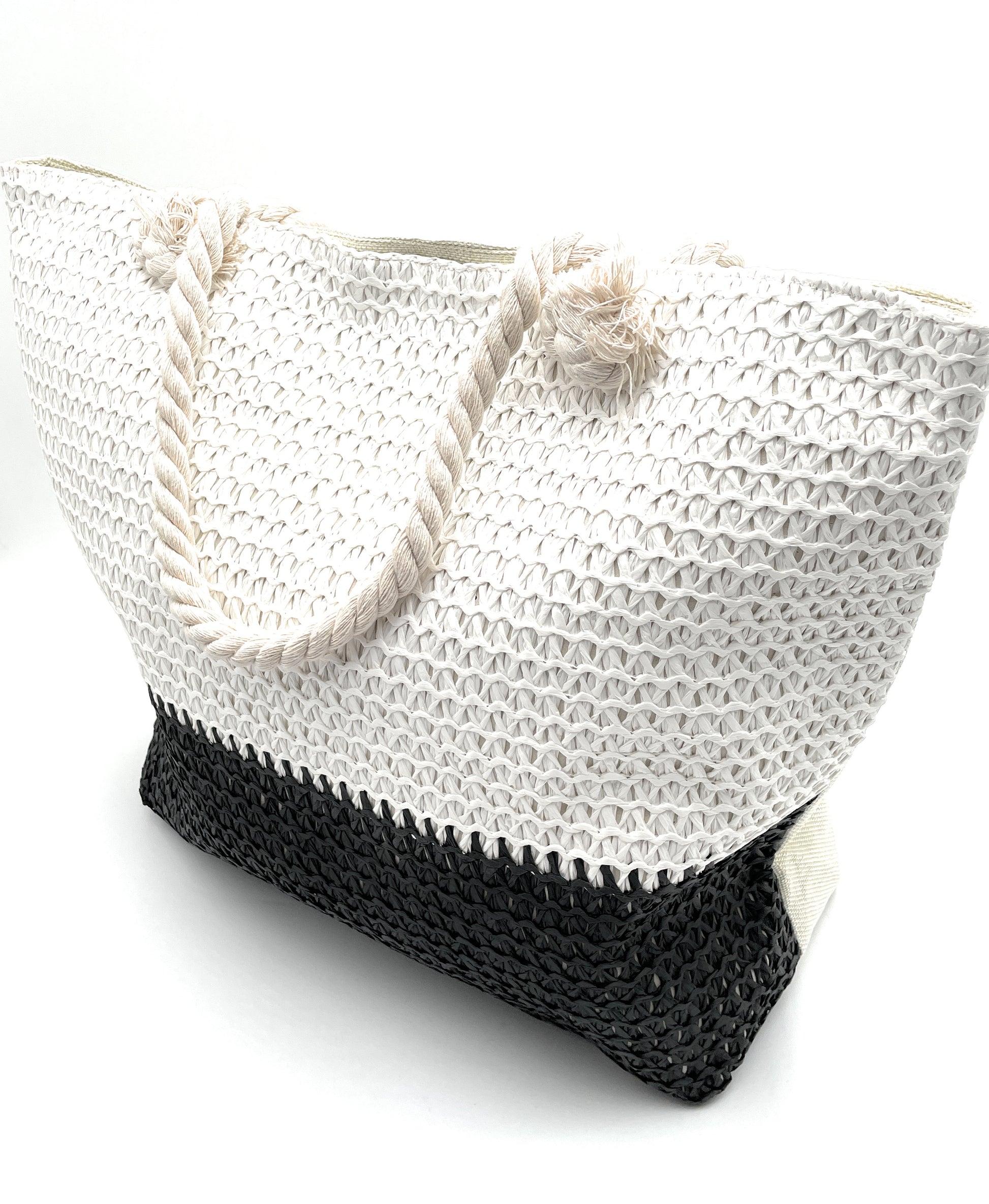 Woven Straw Tote Bag – Two-Tone Beach Purse, Boho Summer Handbag