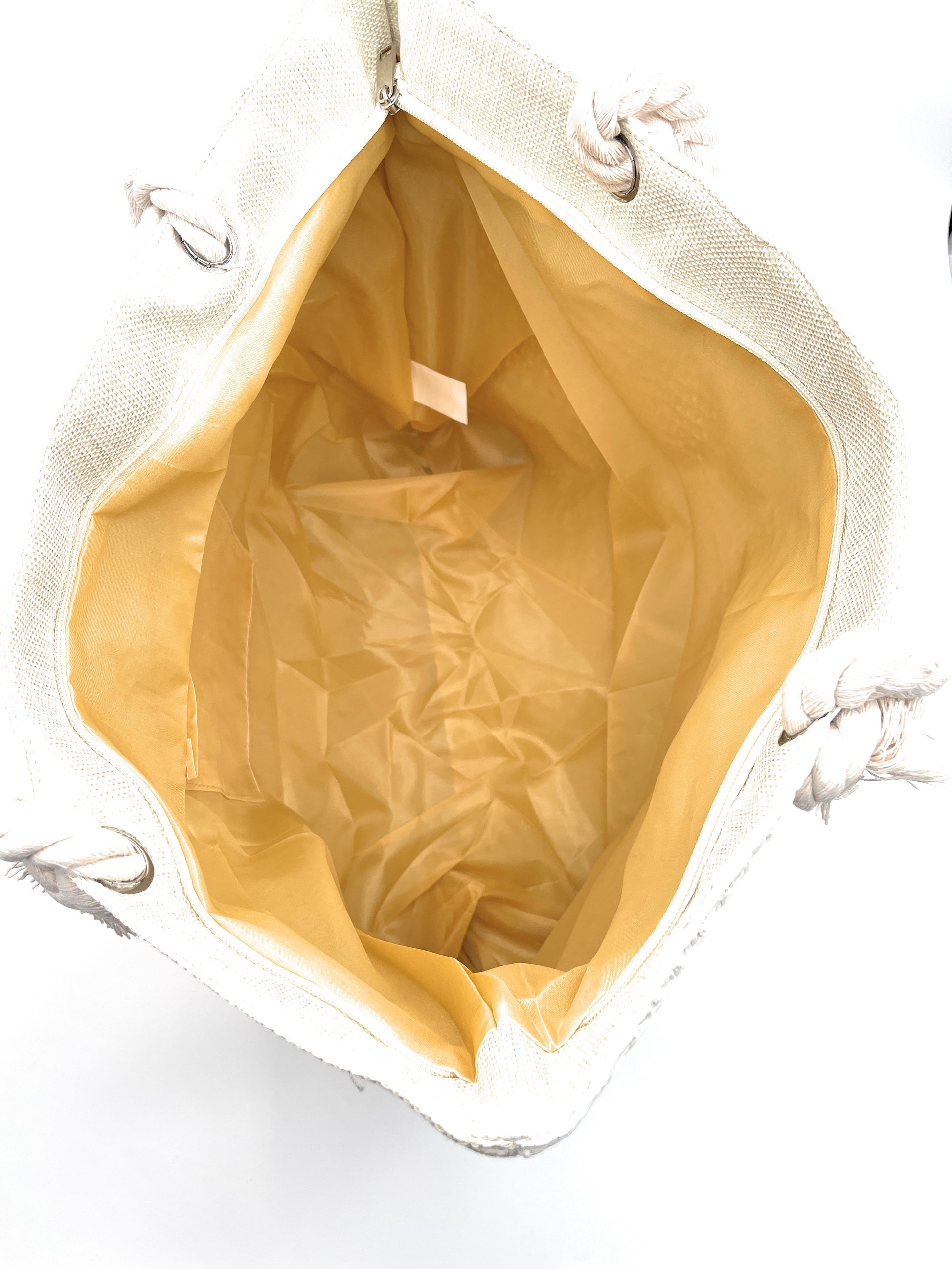 Get ready to hit the beach in style with our Beach Bag Two Tones straw tote bag! With a convenient zipper top closure and sturdy rope handles, this bag is perfect for carrying all your beach essentials. Stay on-trend with the two-tone design while staying organized and chic.