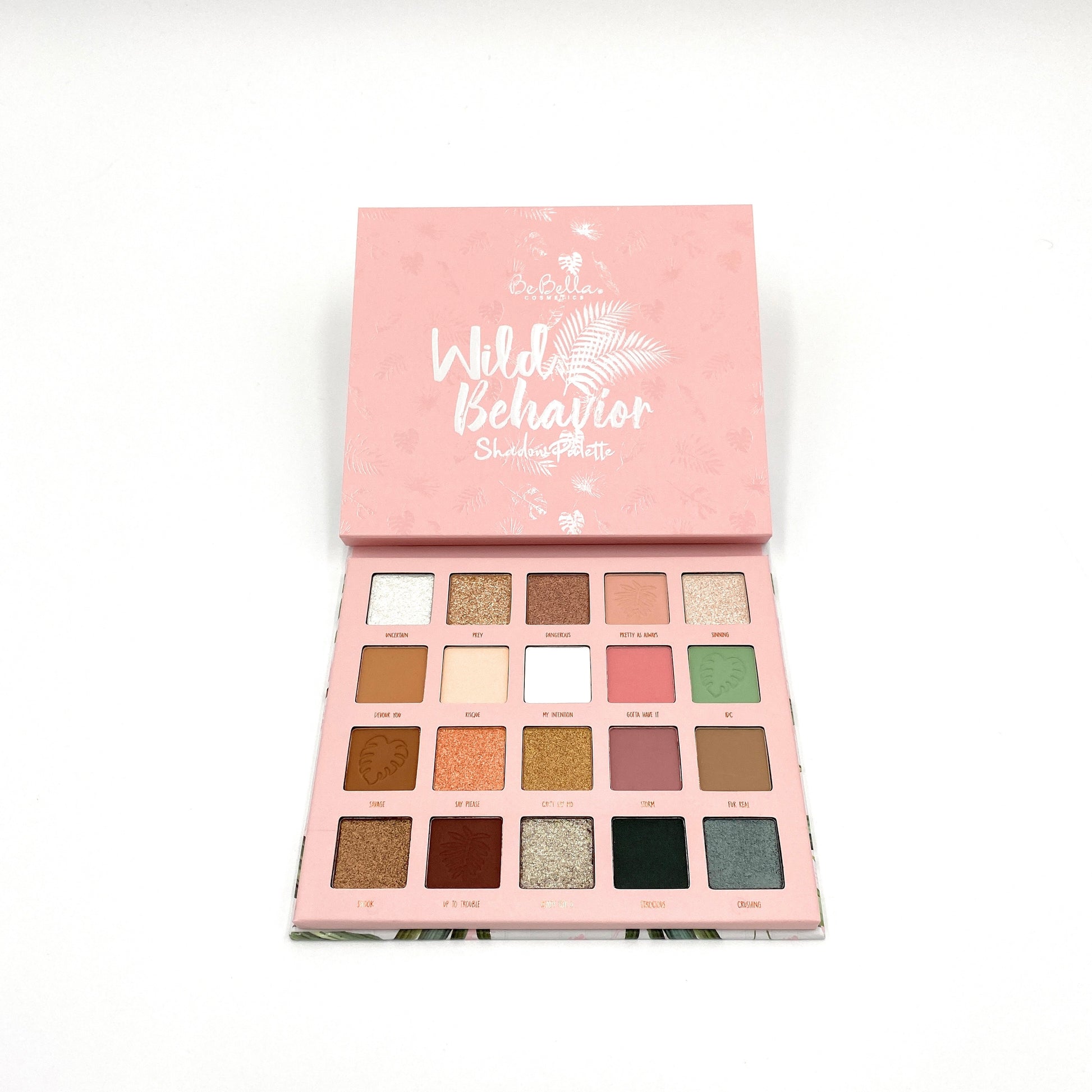 Introducing the BeBella Cosmetics Shadow Palette - Wild Behavior. This expertly curated palette features 20 shades that offer a perfect balance of neutrals, shimmers, mattes, and pops of color, perfect for creating a bold and adventurous look. Elevate your makeup game with our superior quality shades.