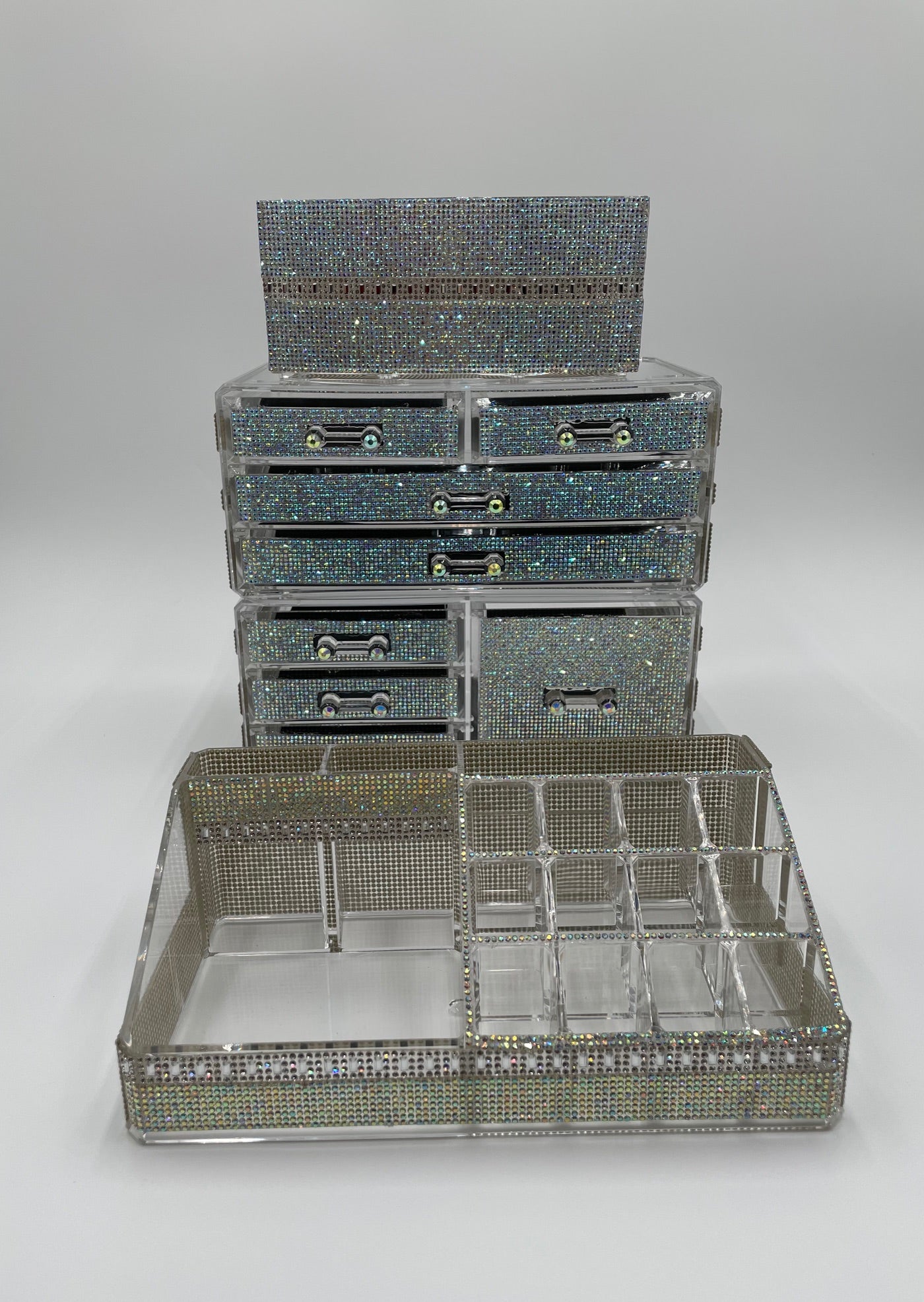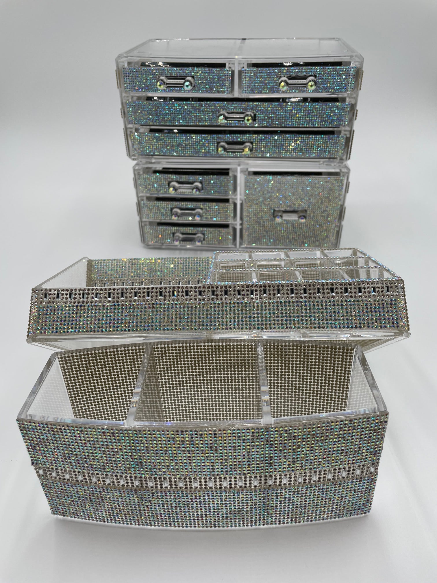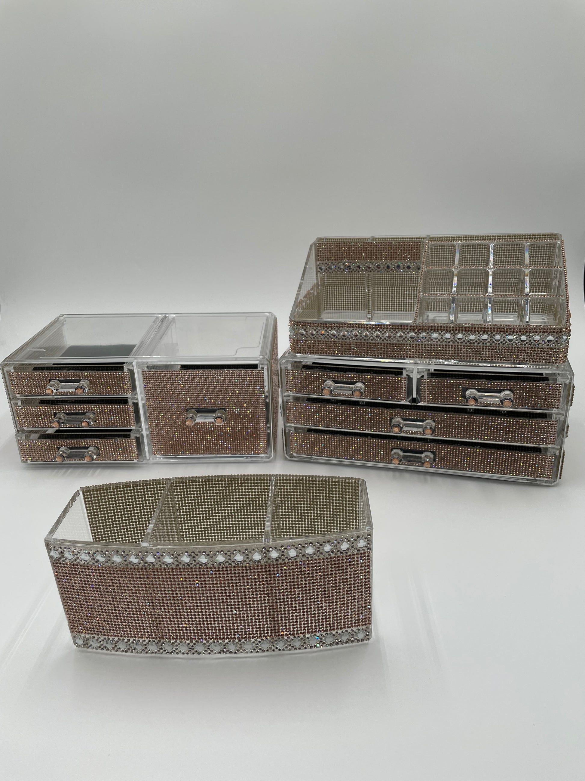 "Get organized with our Bedazzled Beauty Tools & Makeup Organizer! Handmade and perfect for your vanity, it combines fashion and functionality. Keep all your beauty tools and makeup in one place for easy access and a stunning display. Elevate your beauty routine today!"