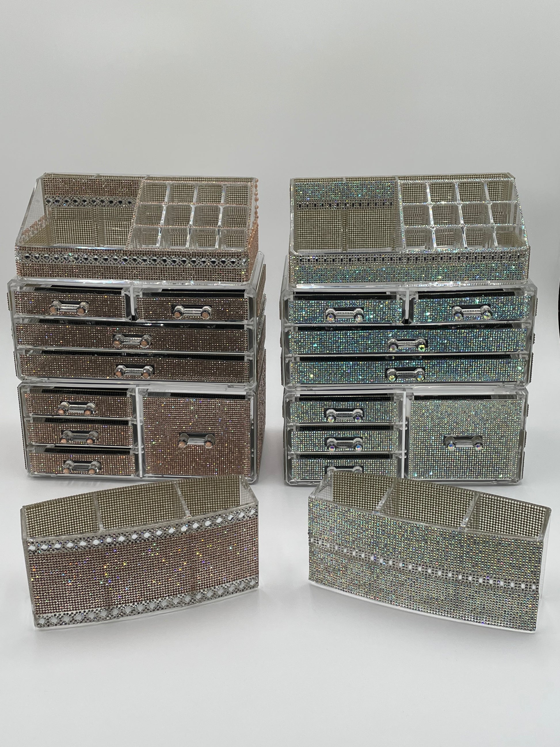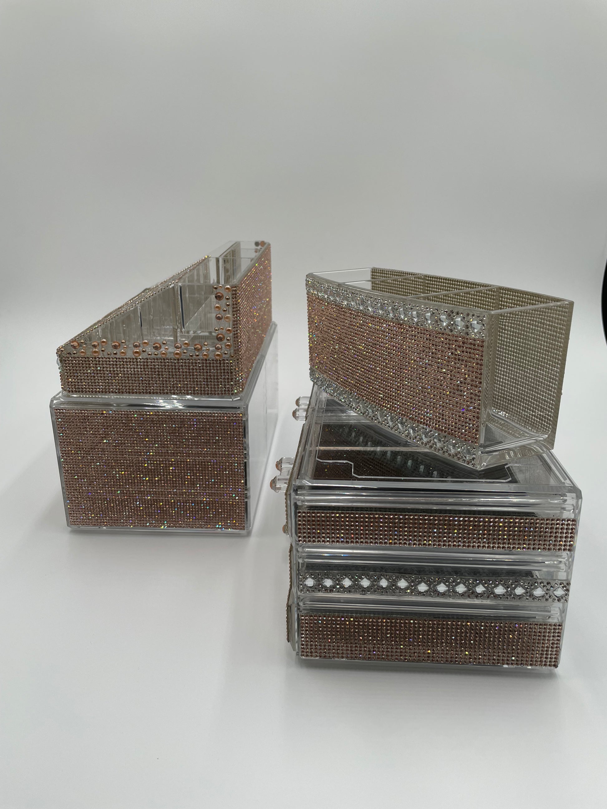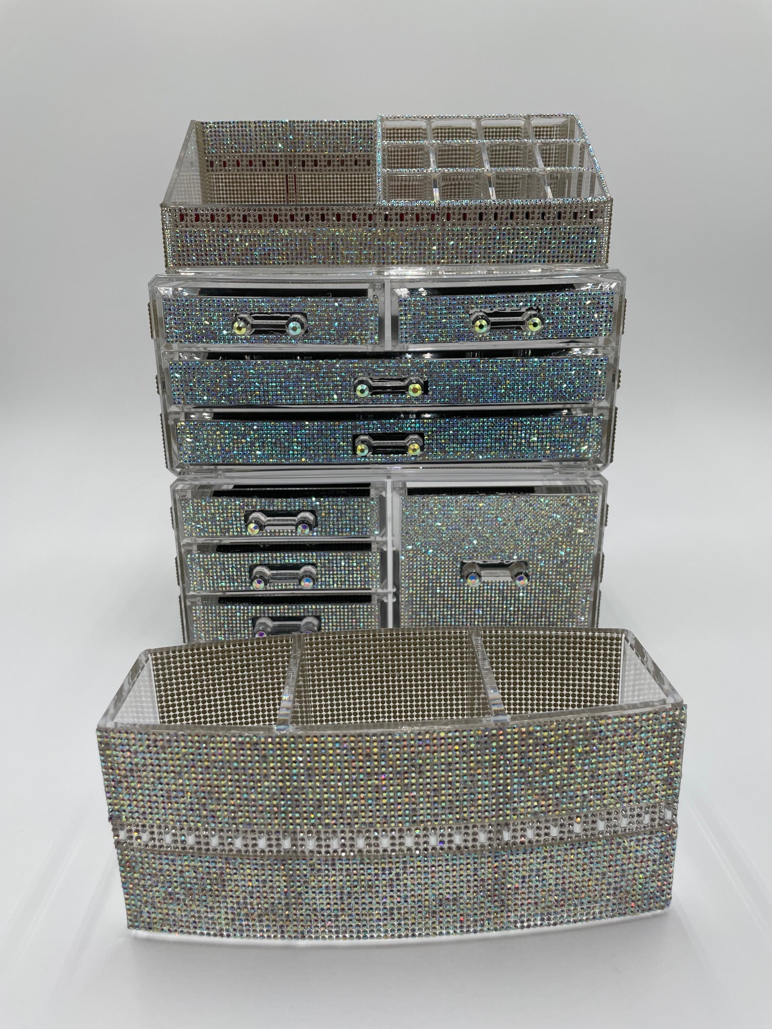 "Get organized with our Bedazzled Beauty Tools & Makeup Organizer! Handmade and perfect for your vanity, it combines fashion and functionality. Keep all your beauty tools and makeup in one place for easy access and a stunning display. Elevate your beauty routine today!"