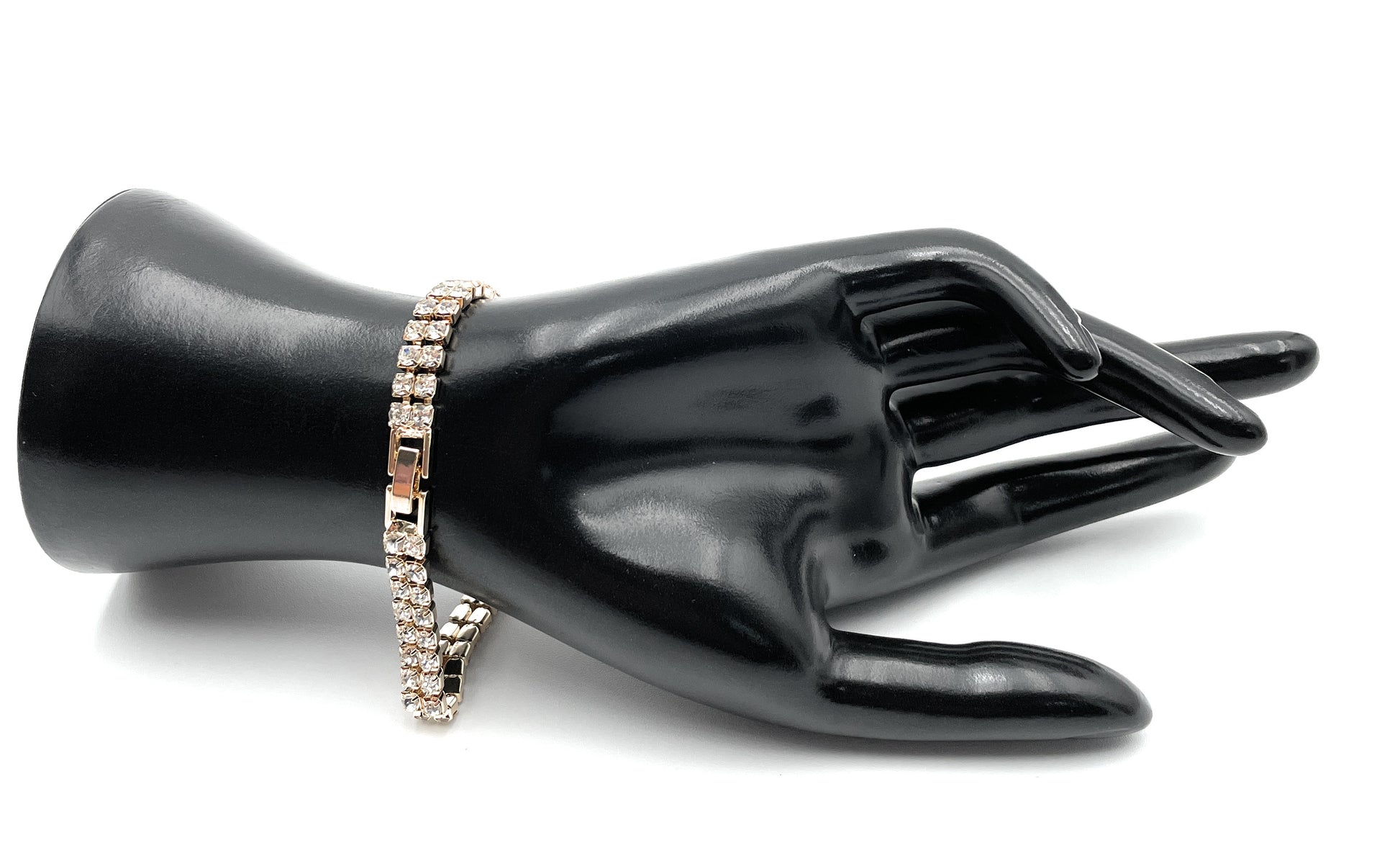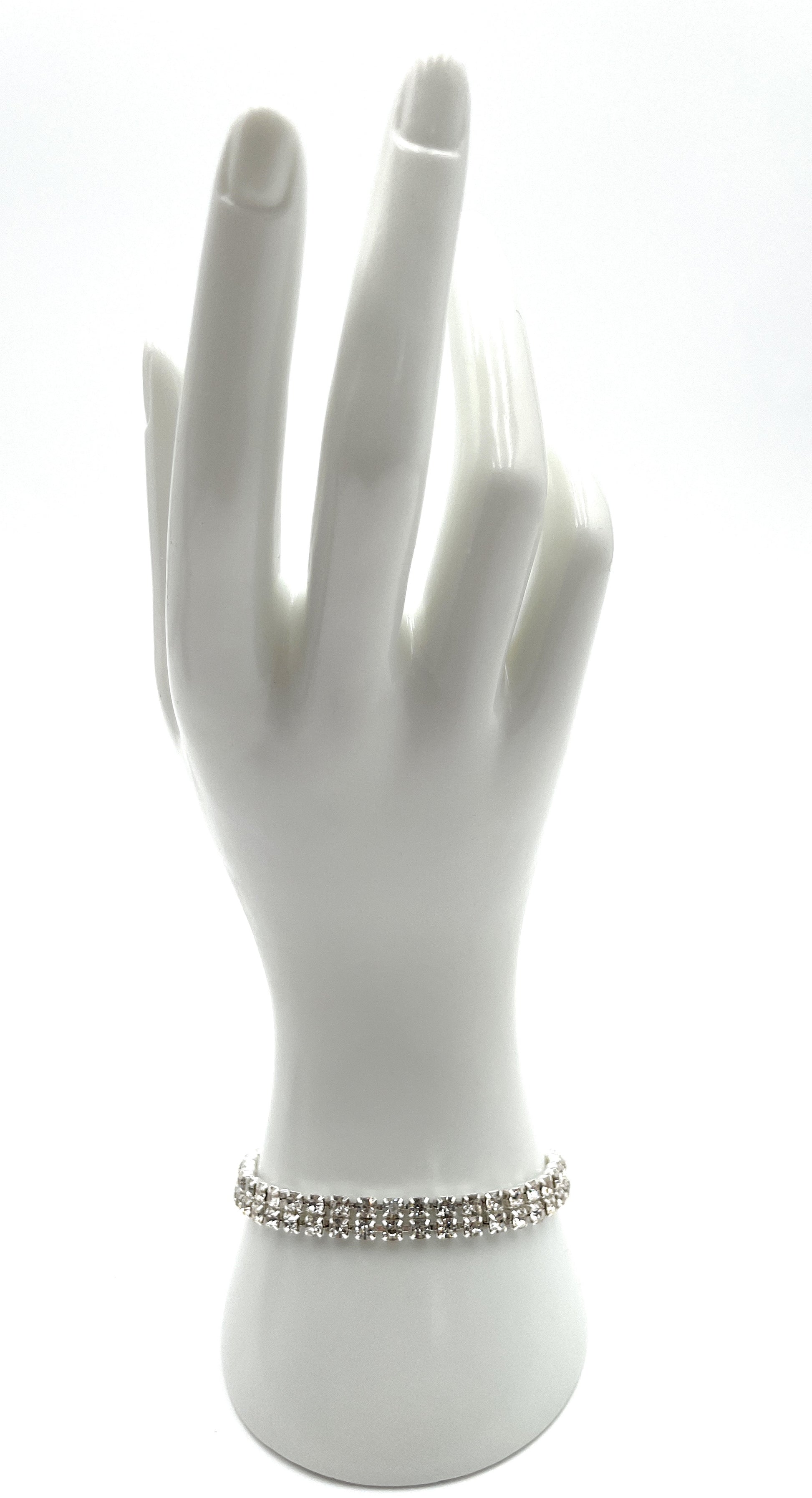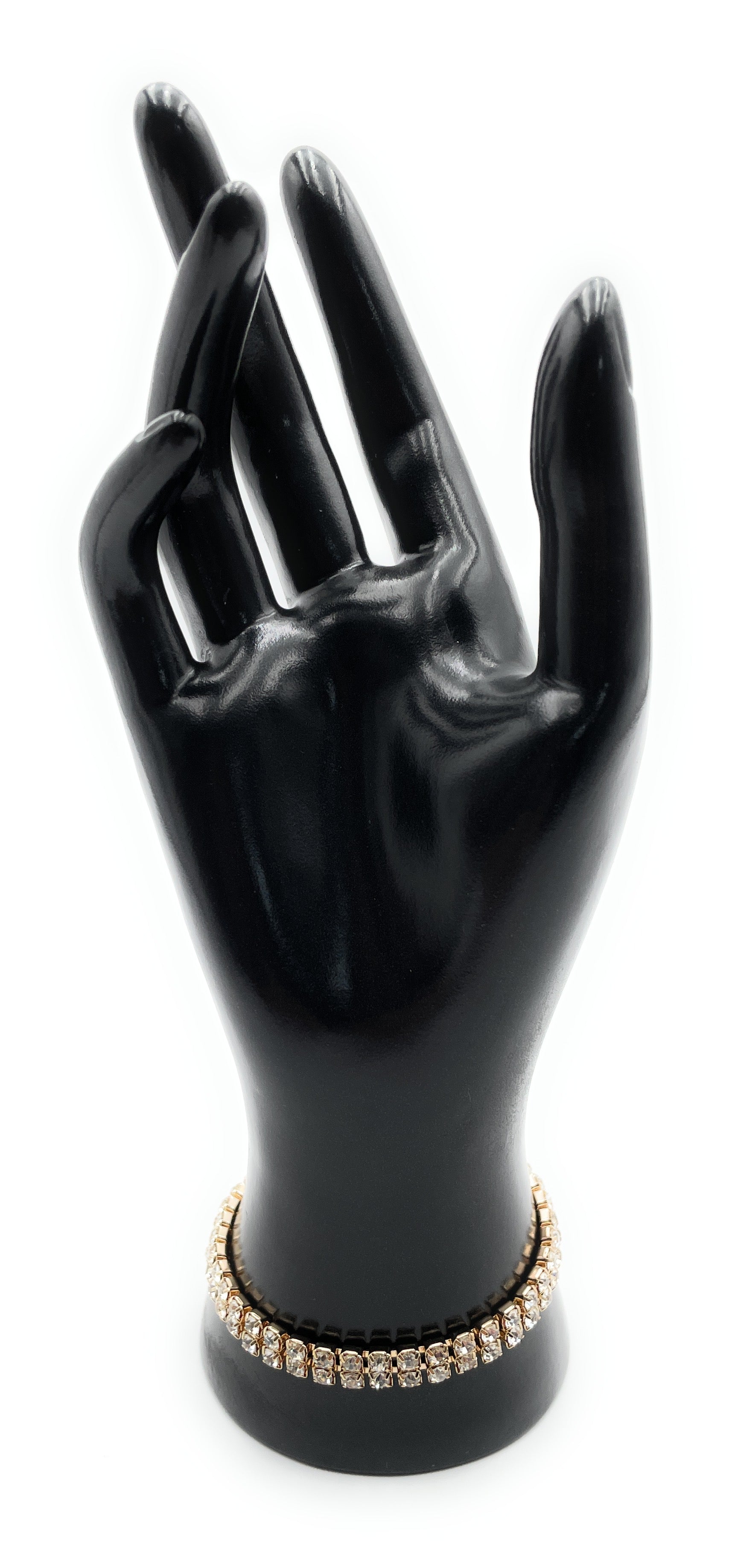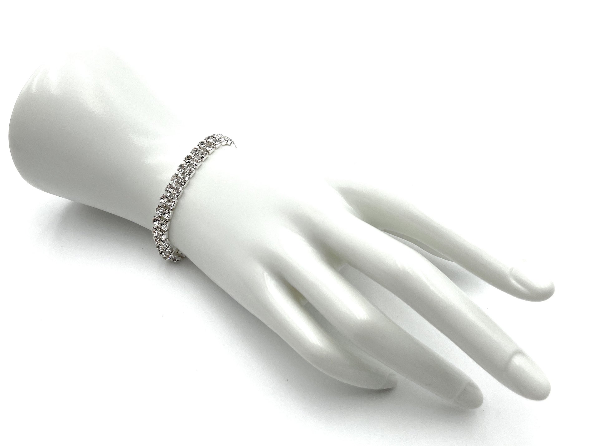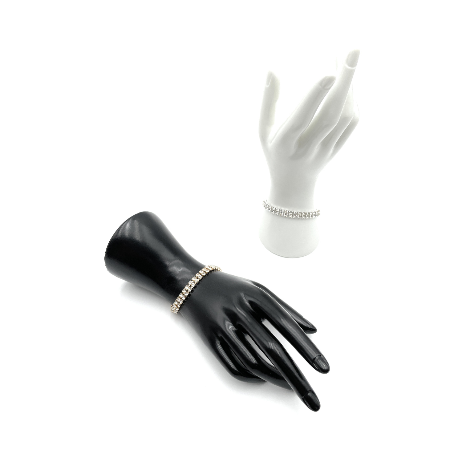 This Rhinestone Banding Crystal White Mesh Bracelet is crafted with high-quality materials and a timeless design. The rhinestone banding and crystal white mesh create an elegant look that's perfect for formal occasions. It's available with a gold or silver plating, so you can select the perfect accessory for your ensemble.