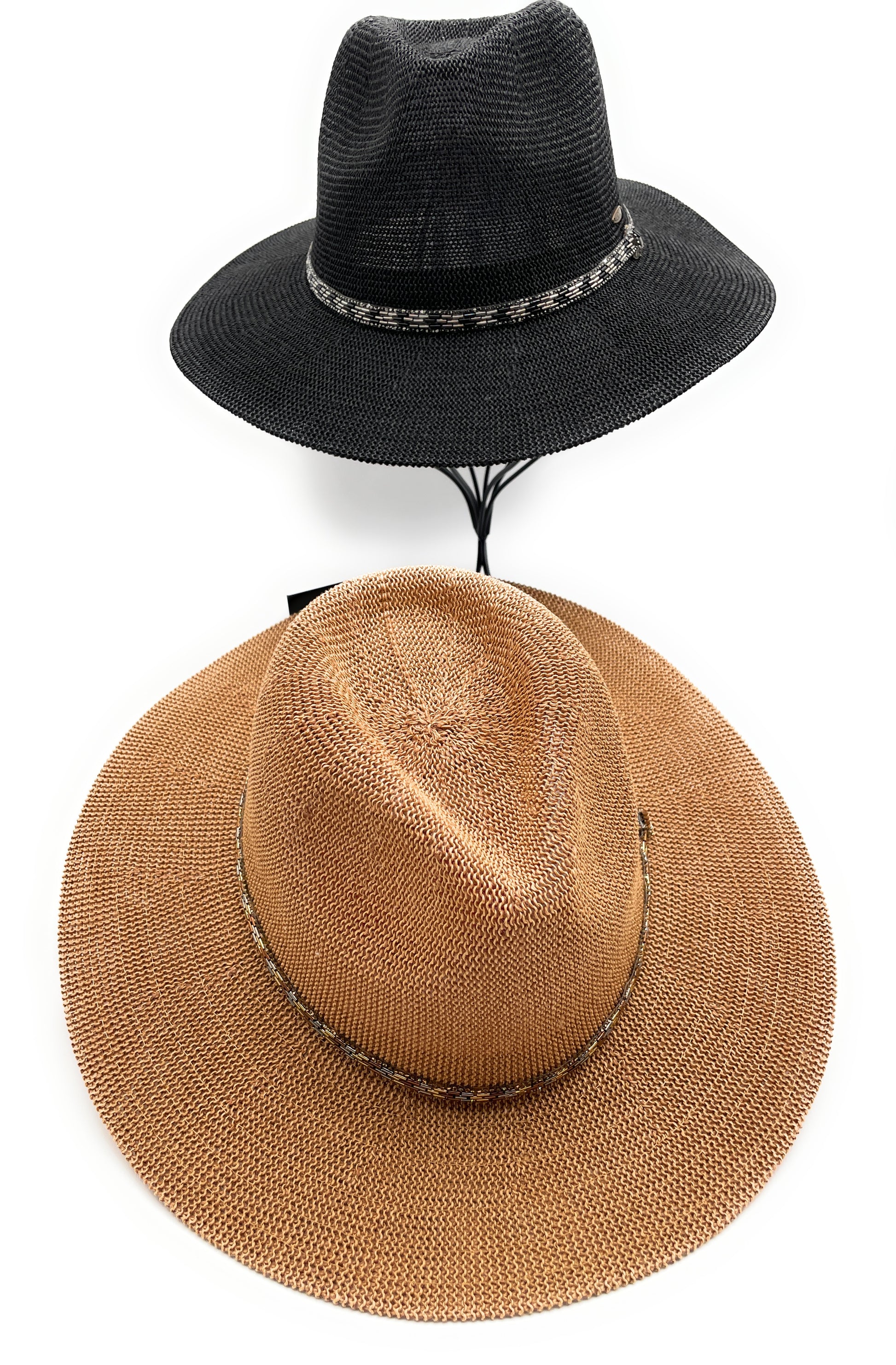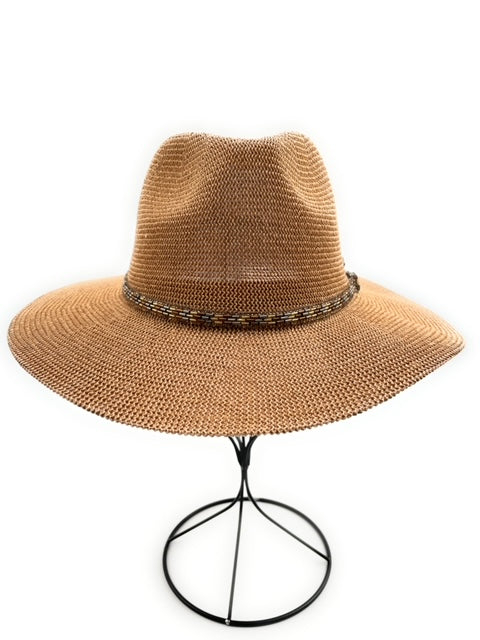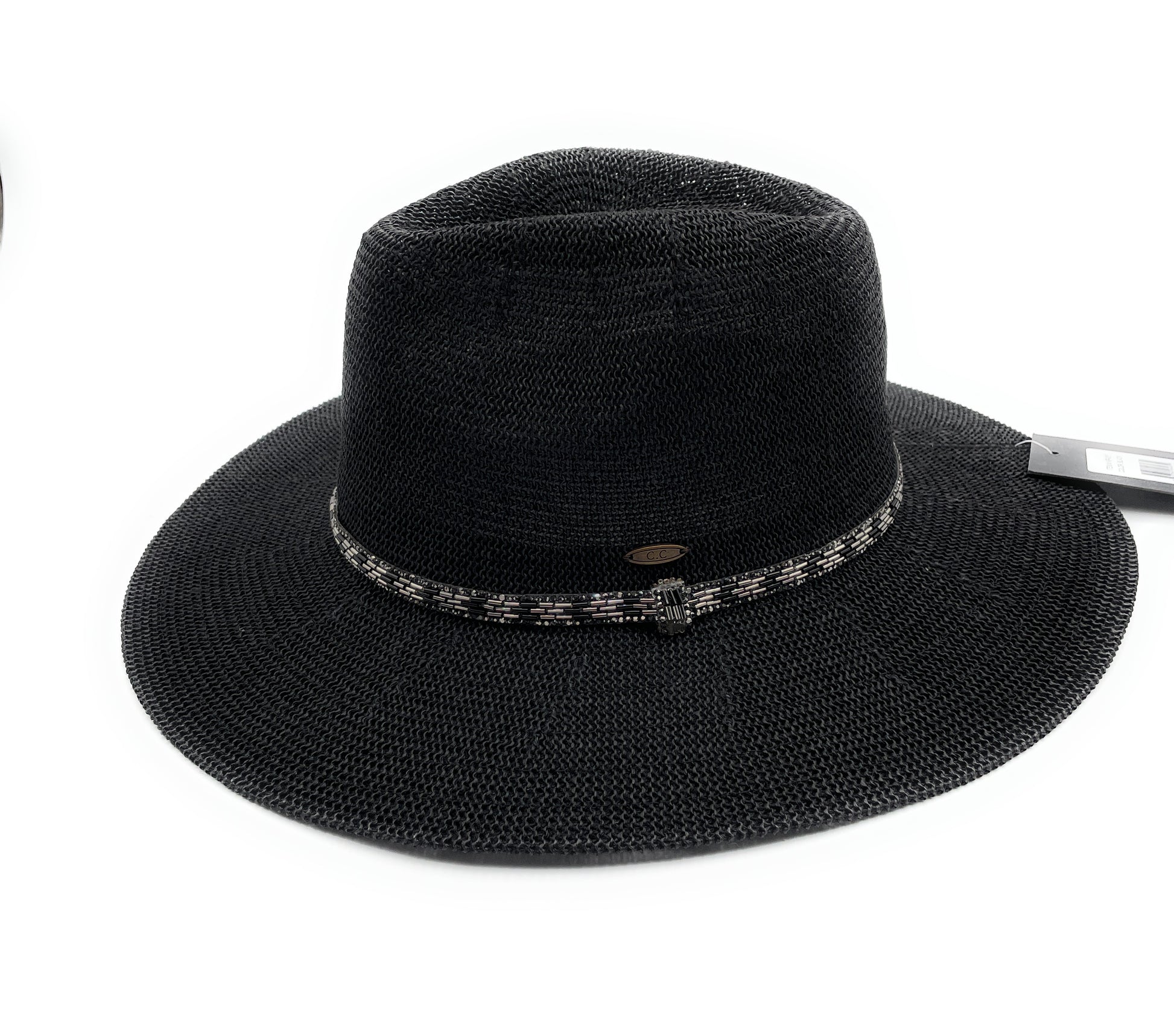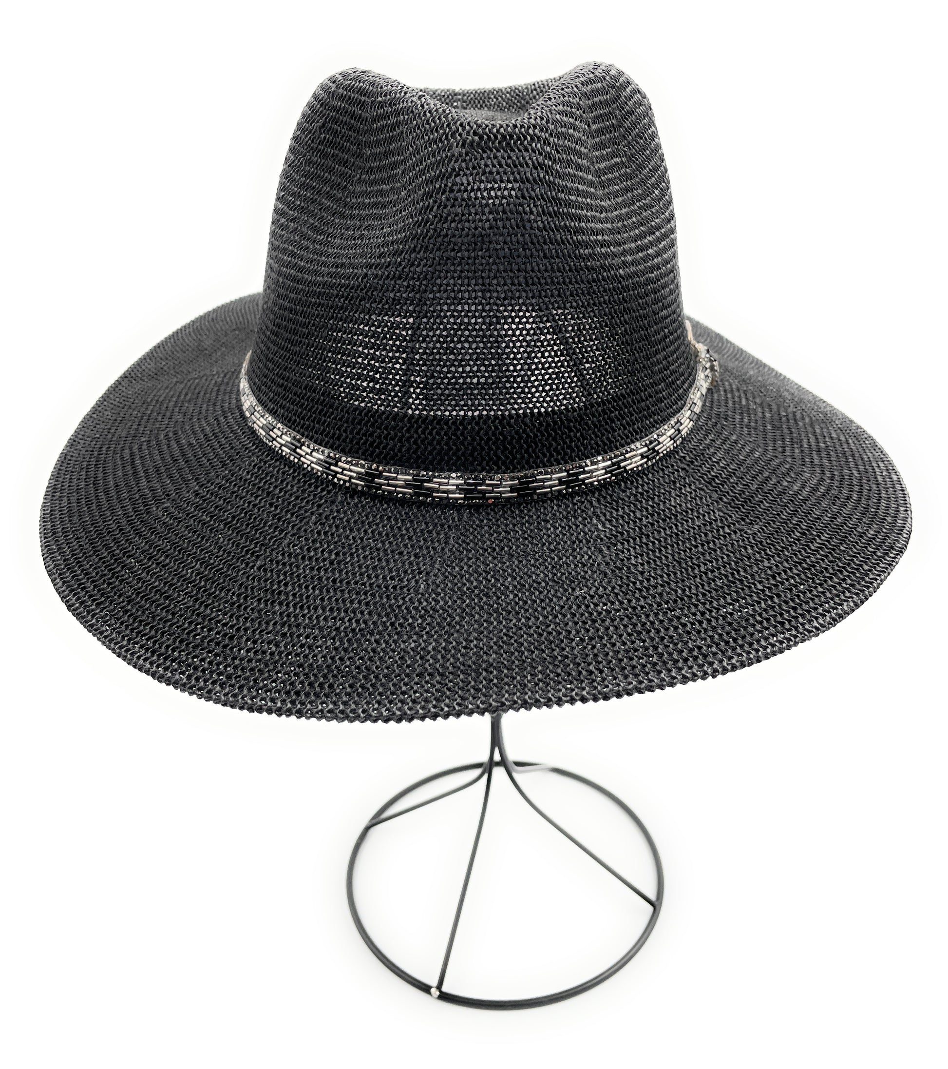 CC Panama Hat – Rhinestone & Bugle Bead Trim | Elegant Wide Brim Sun Hat