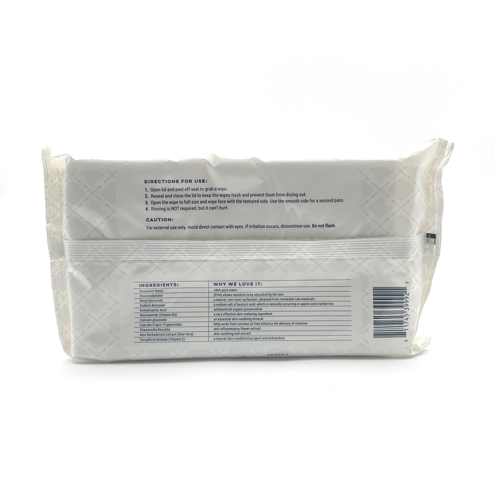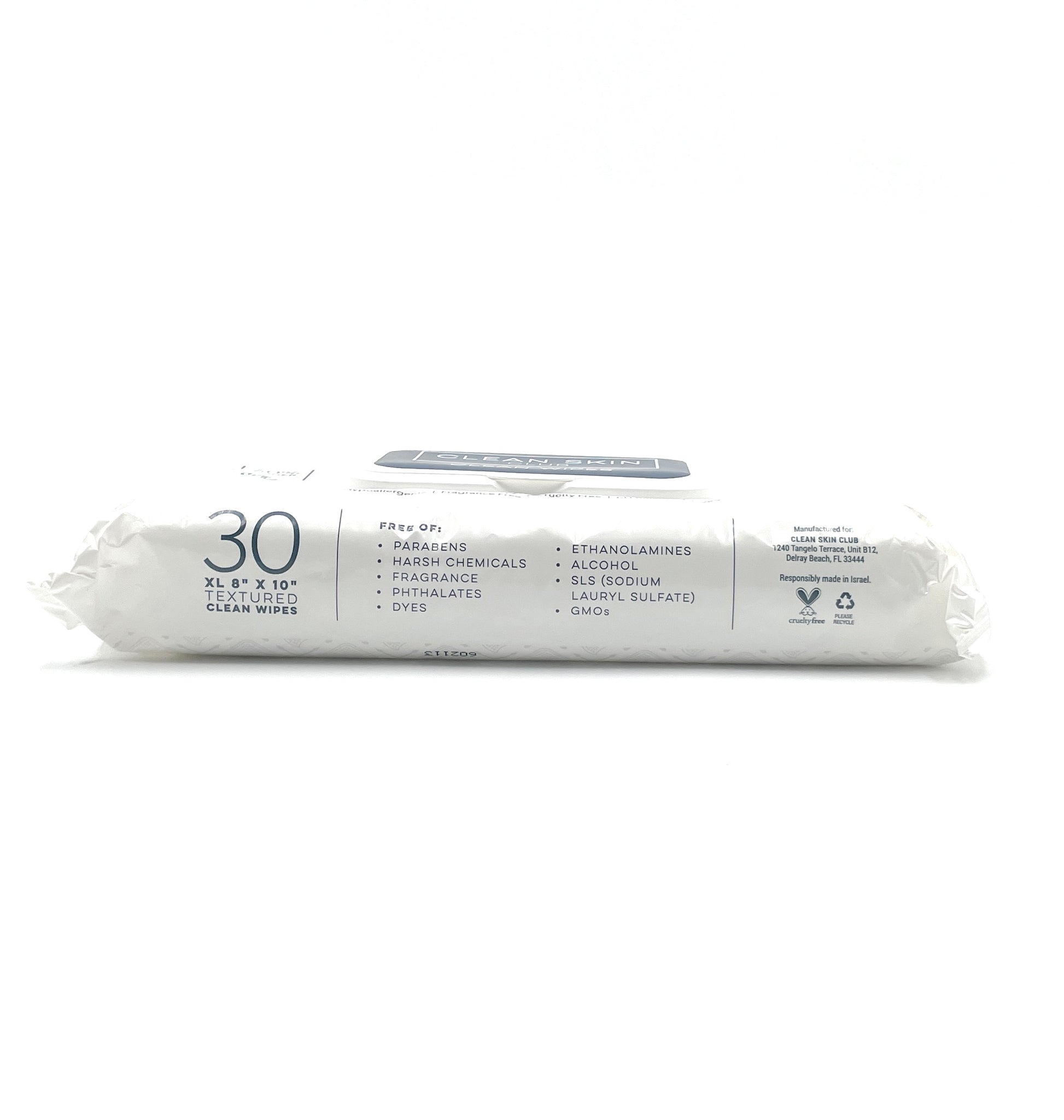 Upgrade your cleansing routine with our CLEAN FACE WIPES. Larger and thicker than regular wipes, they're formulated with safe, gentle ingredients that won't irritate or sting. Use the dual-sided fabric to effortlessly remove dirt and makeup while lightly exfoliating. Perfect for all skin types, including sensitive skin.