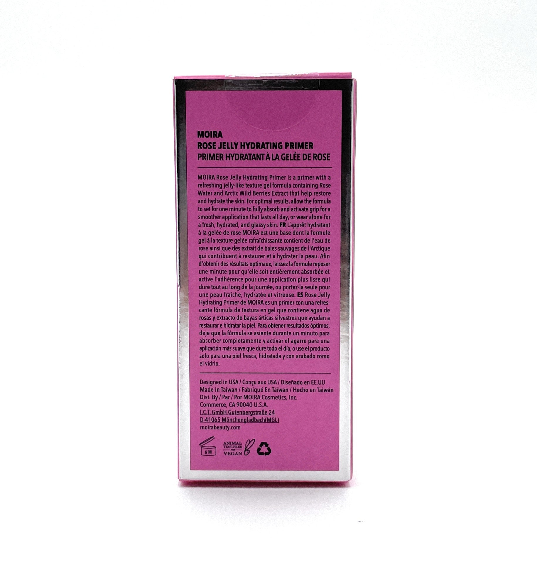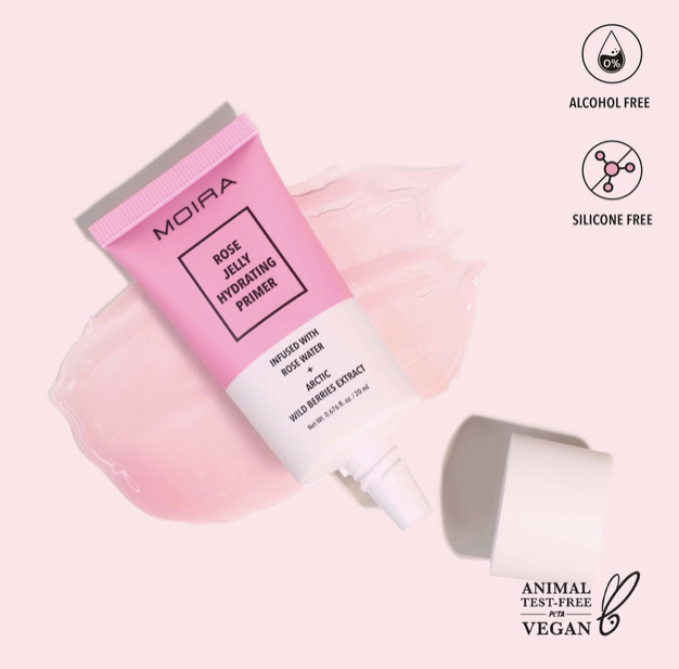 Get ready for a smooth, all-day makeup look with MOIRA's Rose Jelly Hydrating Primer. Infused with Rose Water and Arctic Wild Berries Extract, this cruelty-free, vegan, and paraben-free formula hydrates and restores your skin. Just let it set for one minute and enjoy a fresh, hydrated, and glassy complexion.