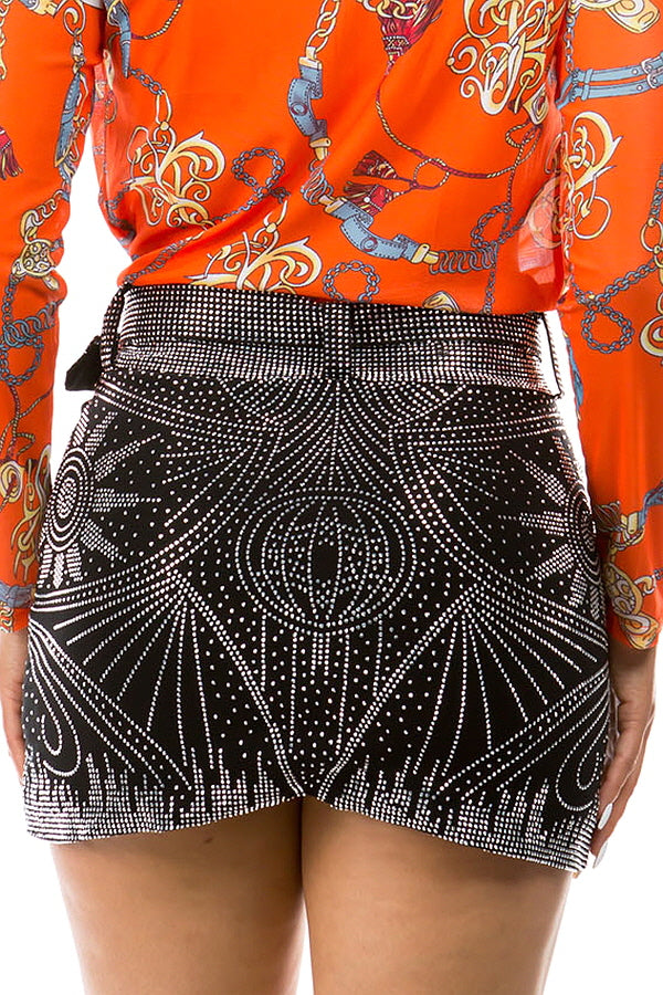 Rhinestone Mini Skirt is perfect for adding a touch of elegance to any look. Crafted from quality materials, it features a chic black fabric and eye-catching silver rhinestones. Its adjustable belt provides a tailor-made fit for all body types, allowing you to effortlessly flaunt your unique style.