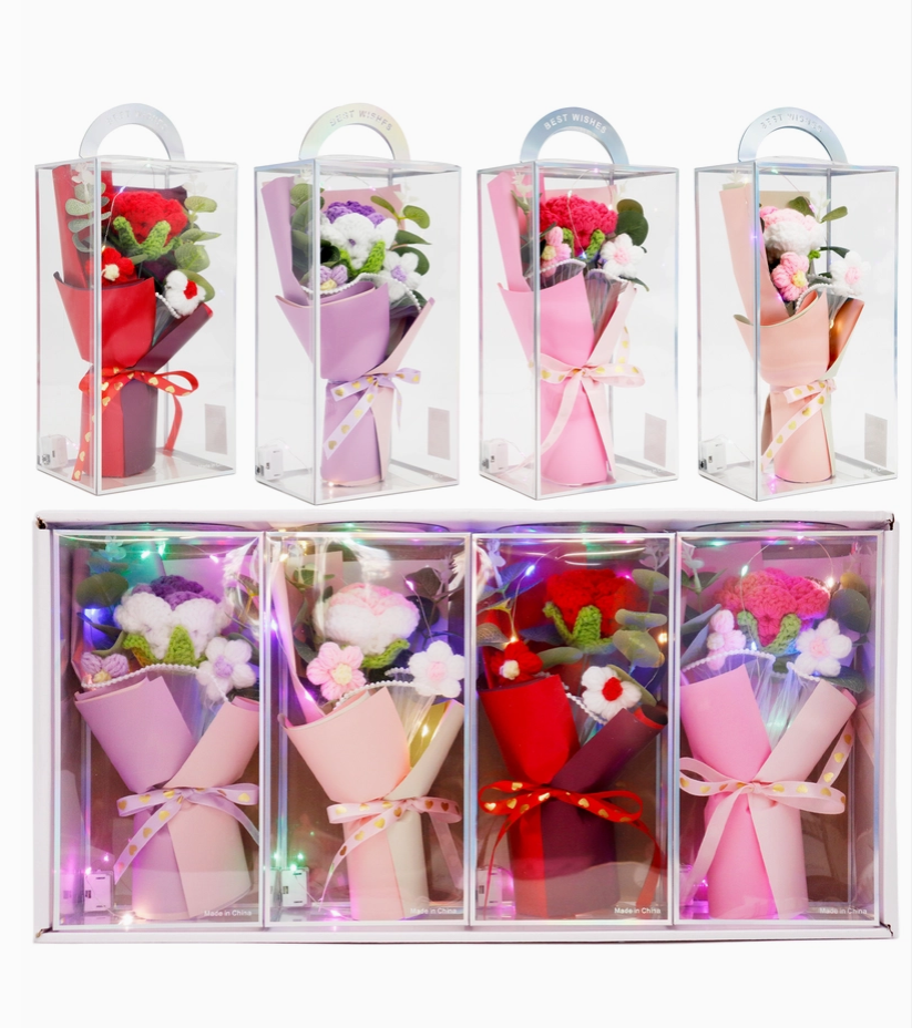 This gift box will make their heart blossom! Featuring a crochet rose flower bouquet, it's the perfect Valentine's Day gift. And with a twinkling LED light, it's sure to brighten their day (and nights)! Love is in the air (and in this box)! Perfect Gift for Birthdays, Bridal Showers, Mother's, Valentine's, Weddings, Anniversary, Graduation, or Decoration