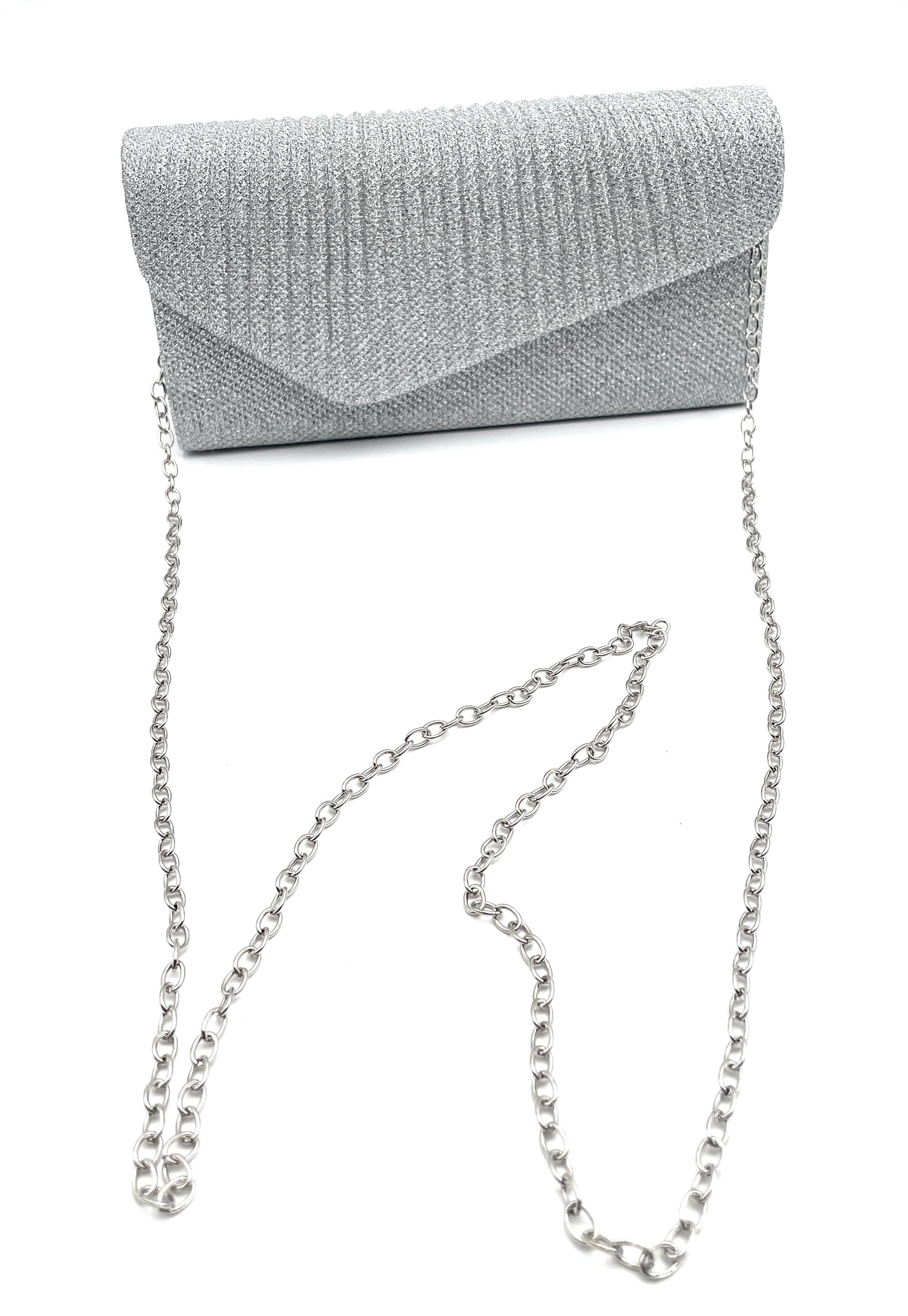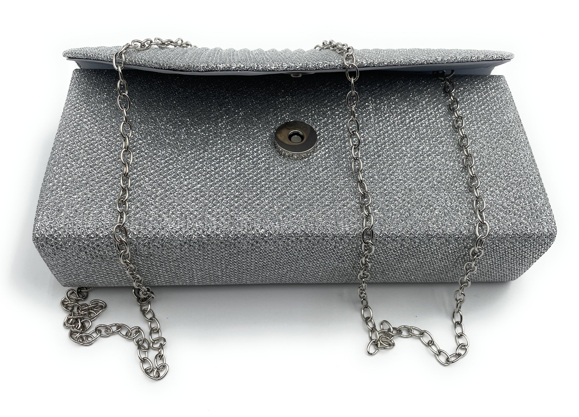 This Evening Clutch Bag provides an elegant accessory for any evening event. Crafted with a silver chain for a stylish finish, this bag is a fashionable choice for evening wear. Enjoy making a stunning entrance to any special occasion.