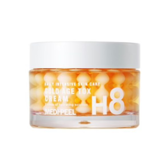 Experience the ultimate luxury of Gold Age Tox H8 Cream. This anti-aging cream, enriched with gold and golden silkworm silk extract, restores skin elasticity and reduces wrinkles. Say goodbye to dryness with its powerful solution for both inner and outer skin. Indulge in flawless, youthful skin with every use. Brighten, reduce wrinkles, and banish dryness for a truly rejuvenated appearance.