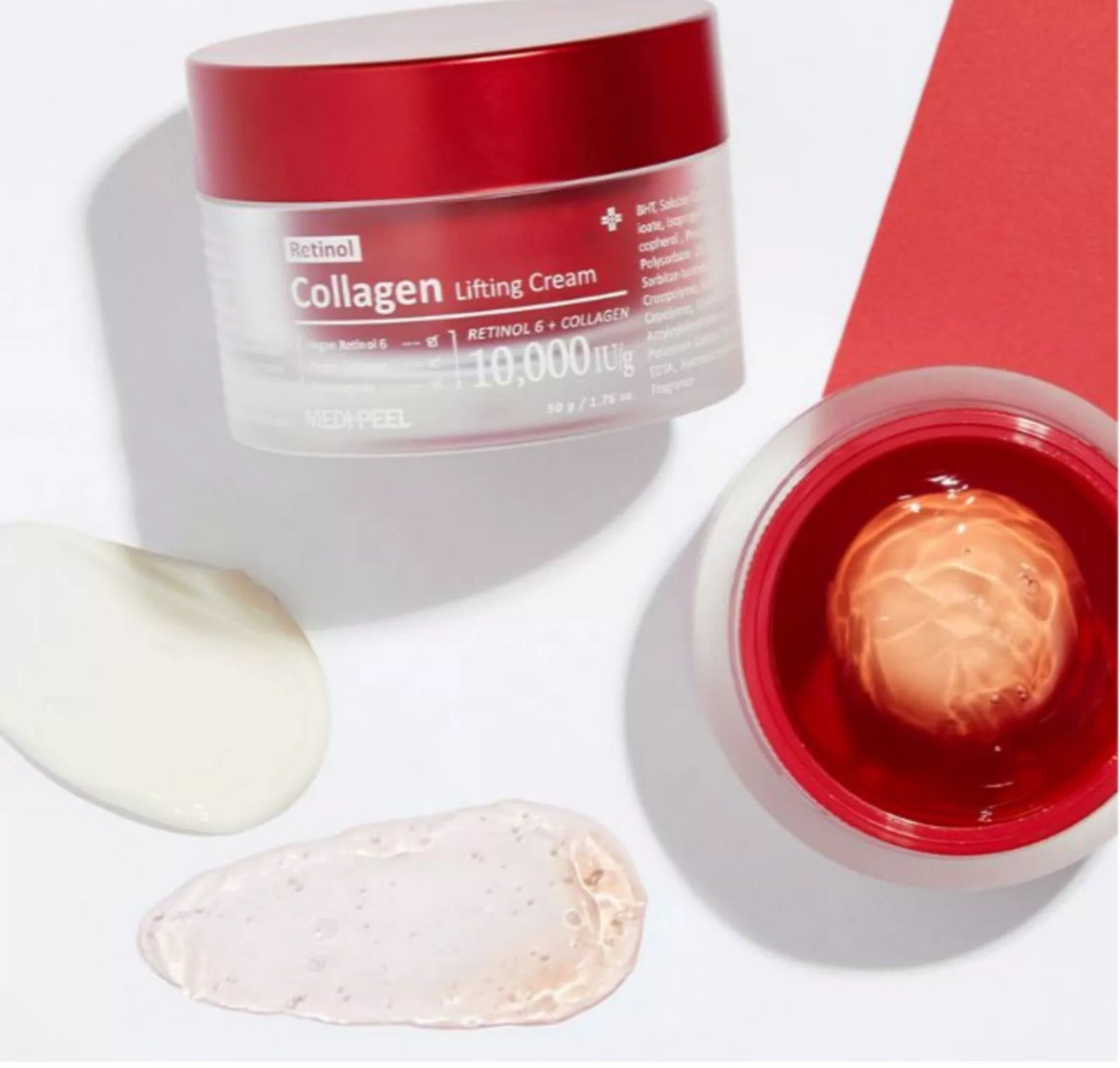 Indulge in luxury with Medi-Peel's Retinol Collagen Lifting Cream. Smooth wrinkles, reduce pores, and firm skin with this powerful cream's two-phase formula. Infused with Retinolgen™ and patented complexes, it deeply moisturizes, evens skin tone, and enhances complexion. Experience the rejuvenating impact of encapsulated retinol and collagen for ultimate skin elasticity.