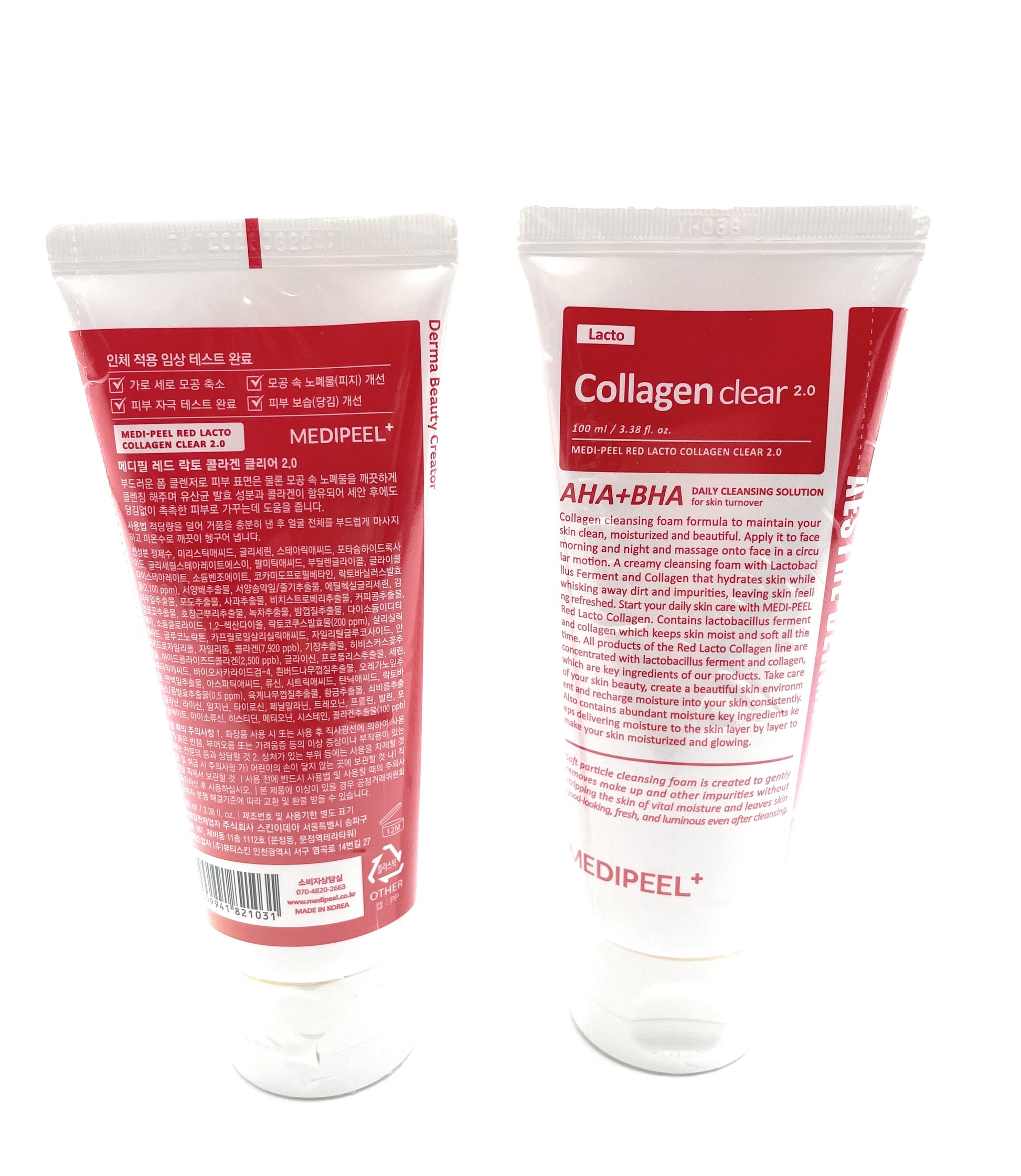 The MEDI-PEEL Red Lacto Collagen Clear 2.0 is the updated version of the previous, with double the amount of human-like collagen and probiotics with added AHA BHA ingredients for improved pore elasticity and enhanced moisturization effects!