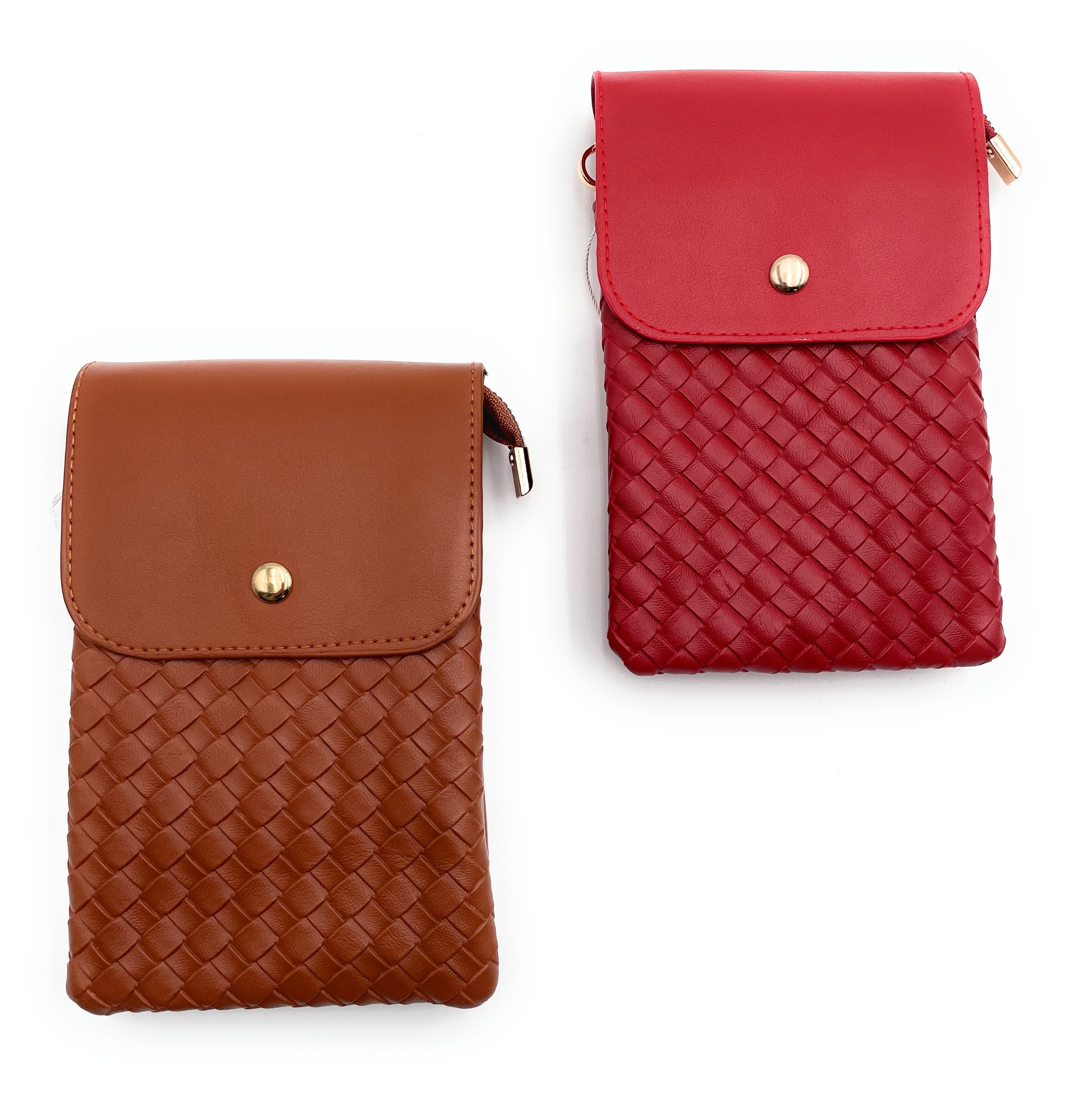 Introducing the Fashion Crossbody Bag - the stylish and practical accessory for the "on-the-go" girl! Made with woven vegan leather, this slim bag fits most cell phones in the front compartment, keeping all your essentials at hand. Say goodbye to bulky bags and hello to effortless convenience!
