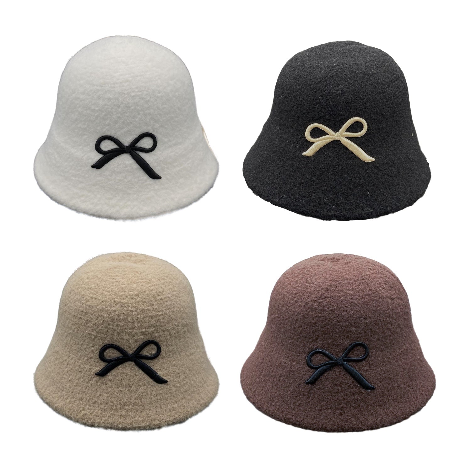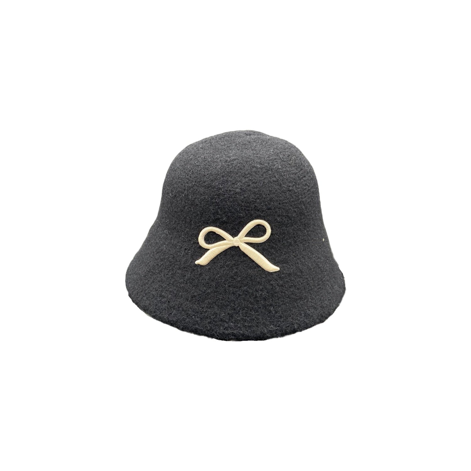 This wool bucket hat features delicate embroidered ribbon detailing, making it a stylish and unique accessory for any woman's wardrobe. Stay warm and on-trend with this must-have hat.