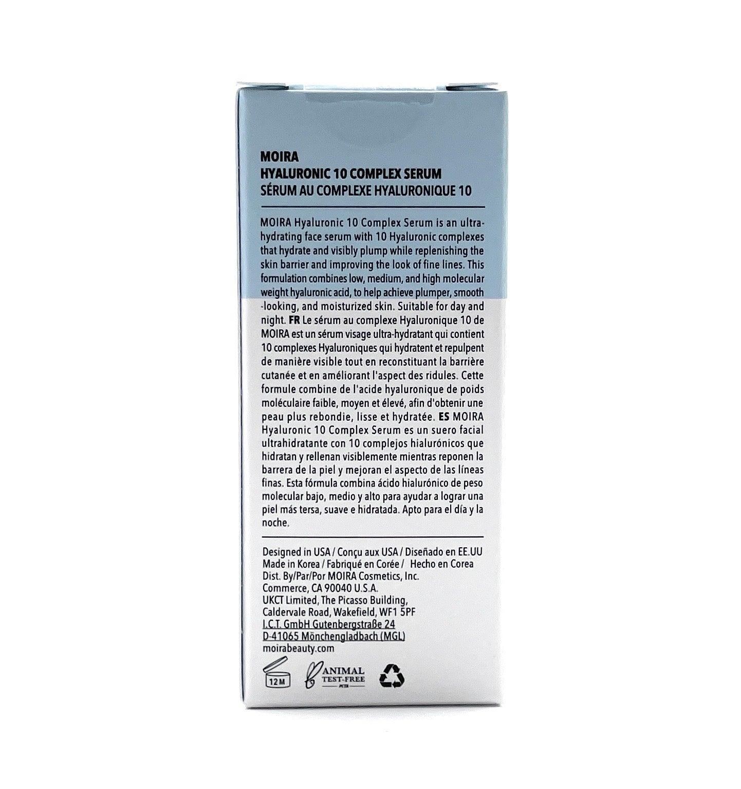 Experience visibly hydrated, plumped, and smoother skin with MOIRA Hyaluronic 10 Complex Serum. Formulated with 10 Hyaluronic complexes, this serum replenishes skin's moisture barrier and reduces the appearance of fine lines. Suitable for day and night use, it combines low, medium, and high molecular weight hyaluronic acid for ultimate hydration.