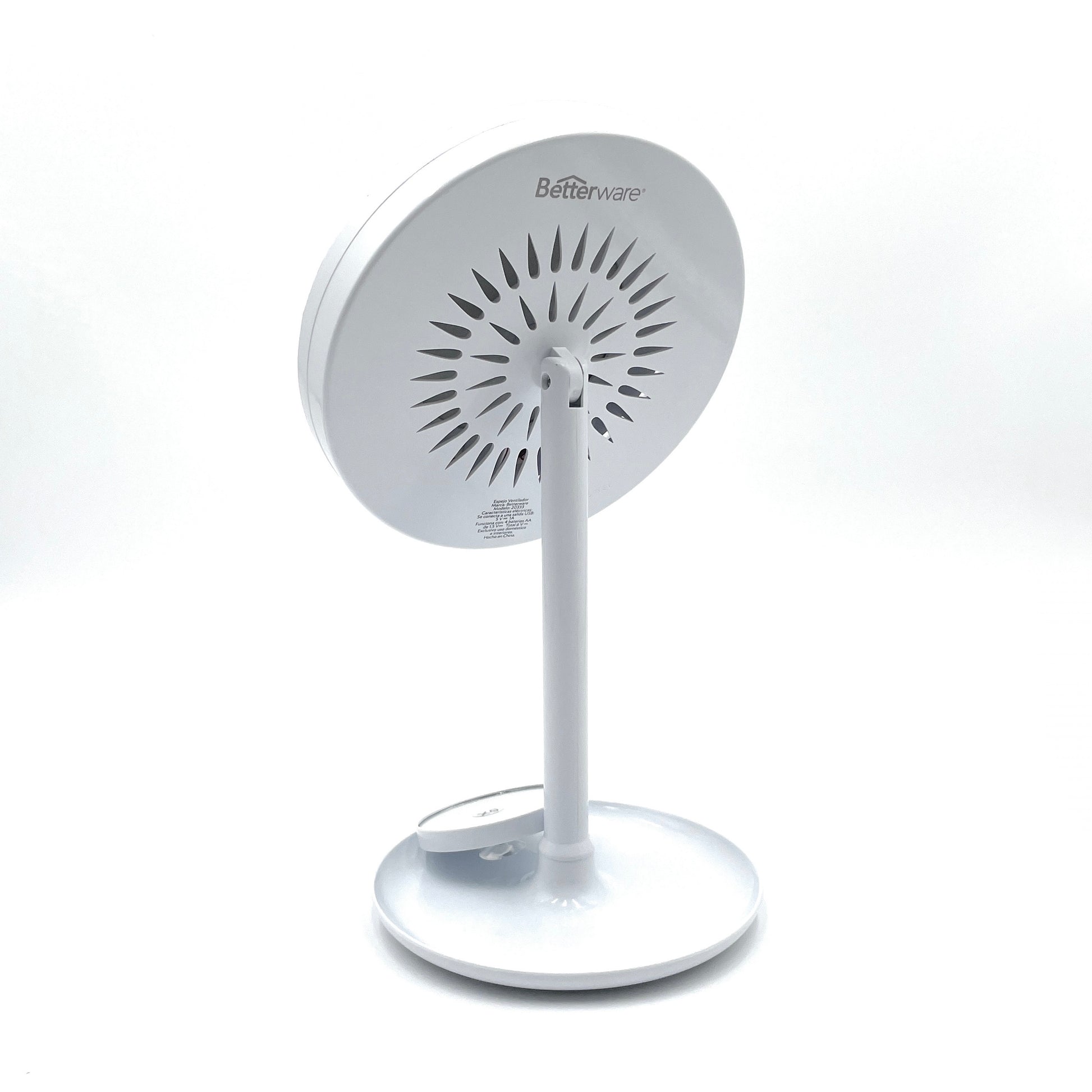 Enhance your beauty routine with the NuBrilliance Beauty Breeze LED Makeup Mirror. Featuring a high-quality, distortion-free reflection, its attached tray provides a convenient spot for your beauty supplies and accessories. Its built-in fan and 5x magnification make it perfect for makeup application or shaving.
