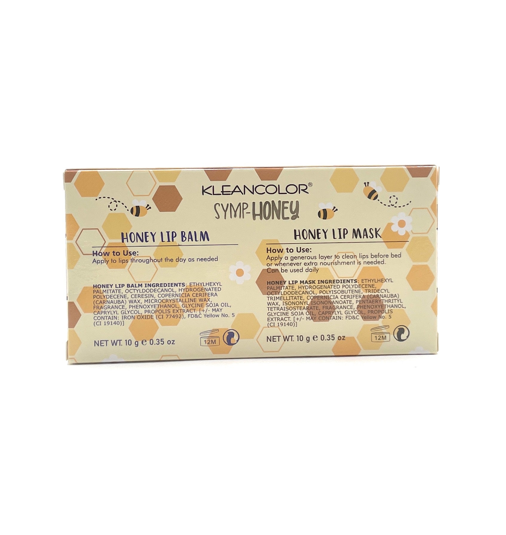 This Lip Care Symp-Honey 2pc Set includes a honey lip balm and mask for intense hydration and nourishment. Repair and condition your lips while you sleep with the mask, and moisturize and nourish with the lip balm. Made with propolis extract, this 24hr hydrating set will leave your lips visibly smooth, supple, and healthy. Includes honeycomb stir sticks.