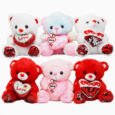 Love Sequined Heart Teddy Bear LED Light-Up