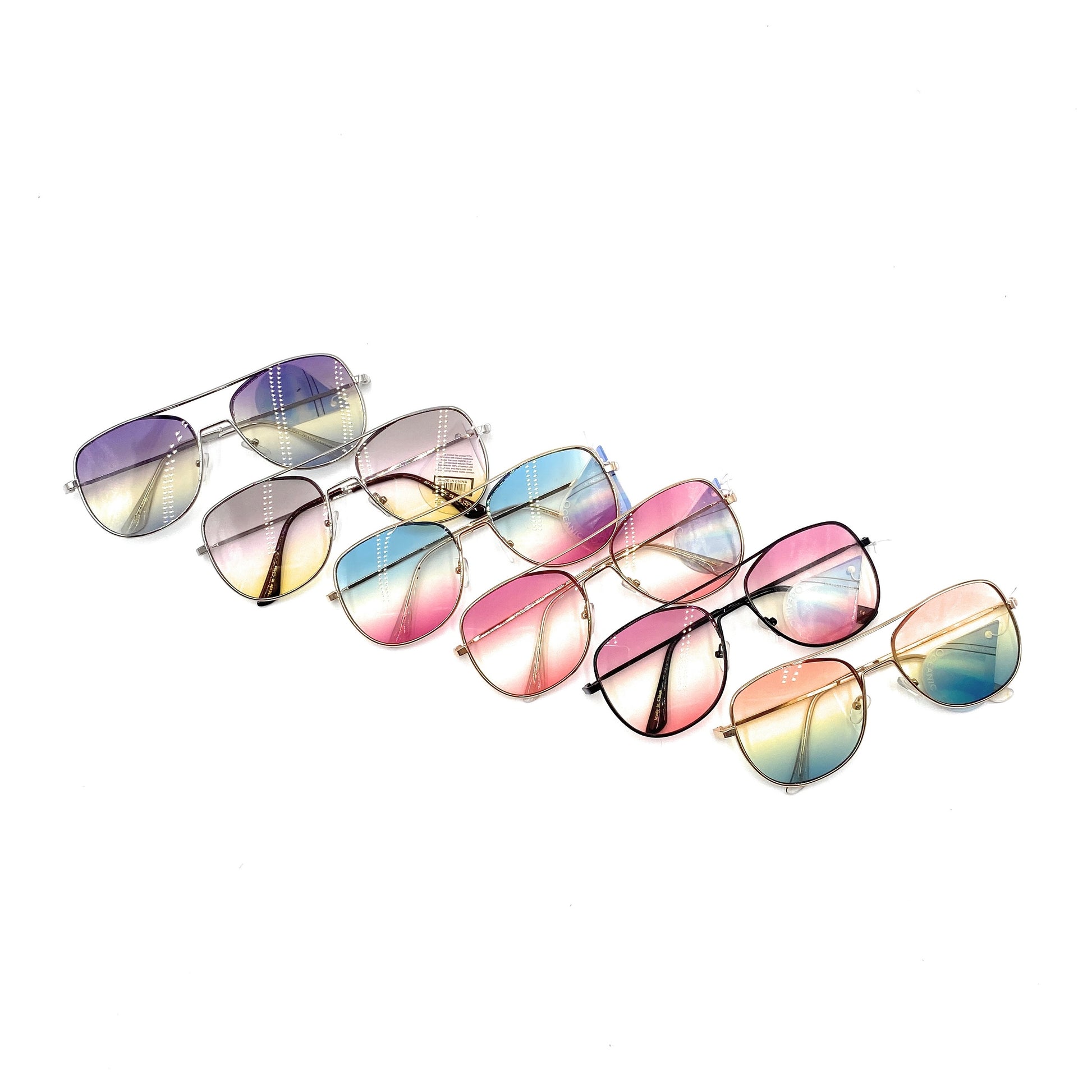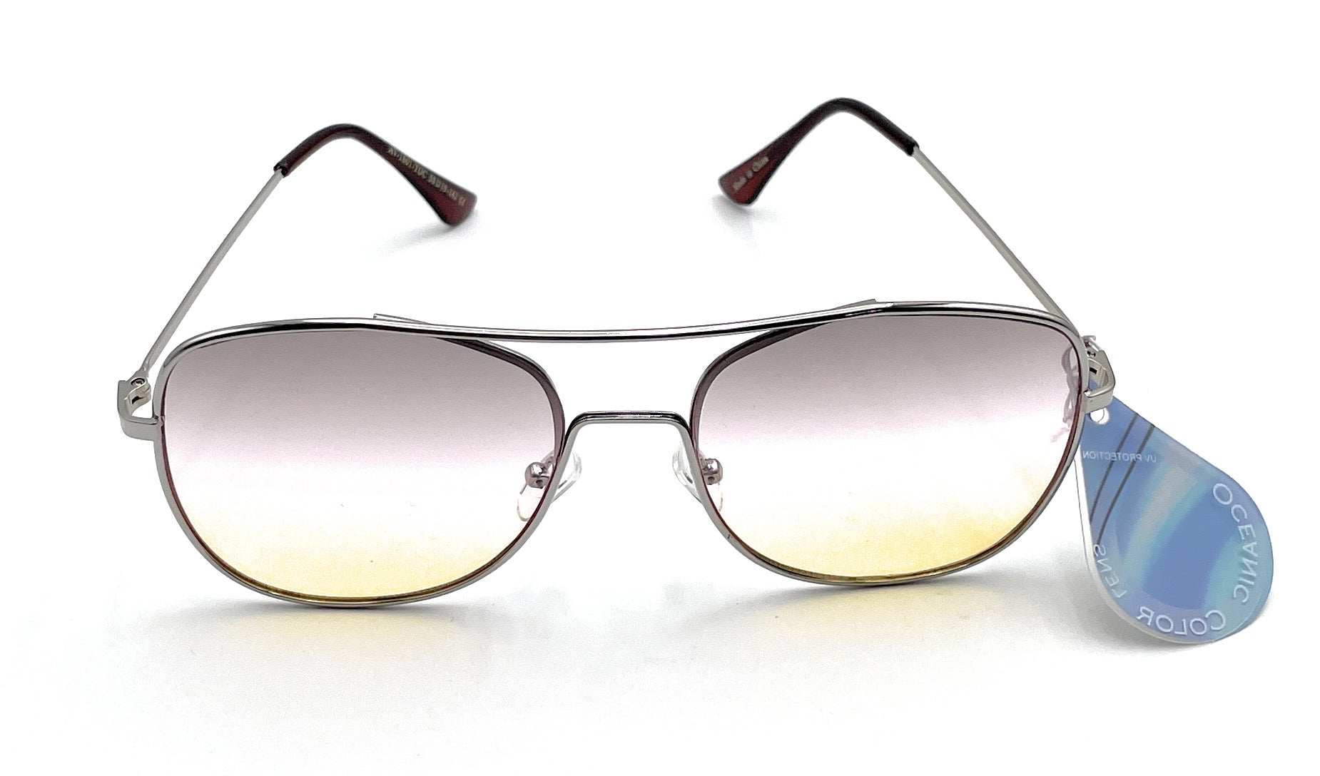 Experience the ultimate vision with our Oceanic Color Tapered Aviators Sunglasses! The triple oceanic color lenses provide a stunning gradient effect in a round shape, enhanced by the slight taper and curved brow bar. Enjoy complete UV protection while making a statement. Imported for quality and style.