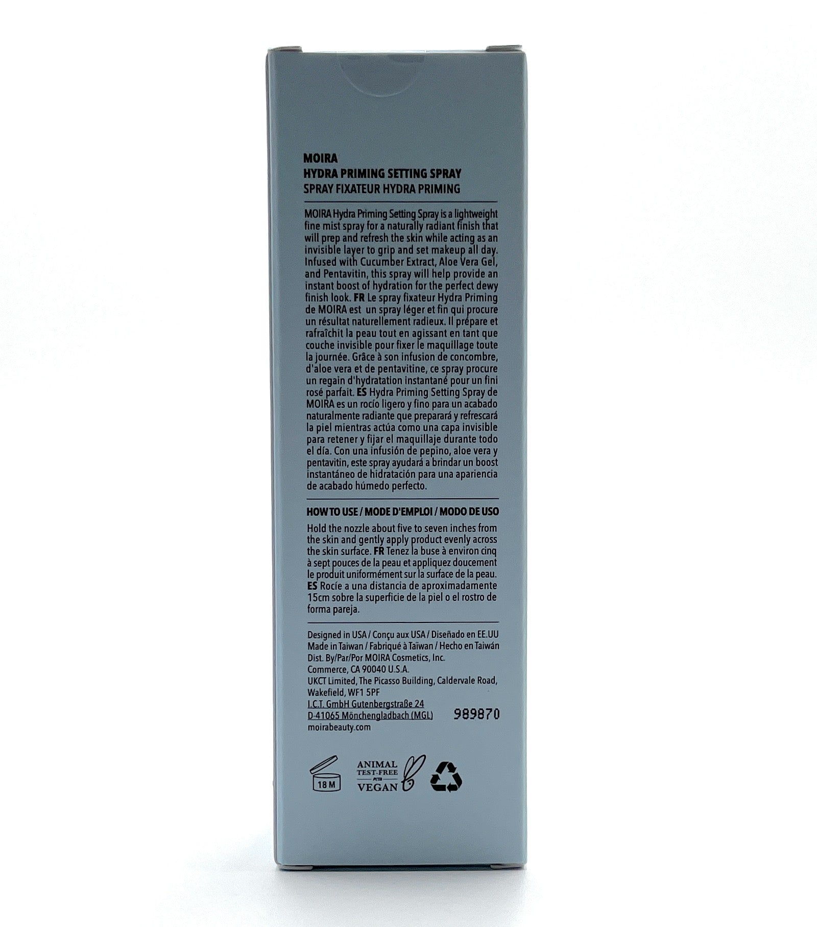 Keep your makeup looking fresh all day with MOIRA Hydra Priming Setting Spray. Its lightweight, fine mist formula preps and refreshes skin while holding makeup in place. Infused with hydrating cucumber extract, aloe vera, and Pentavitin, this spray gives a natural, dewy finish. Say goodbye to touch-ups!