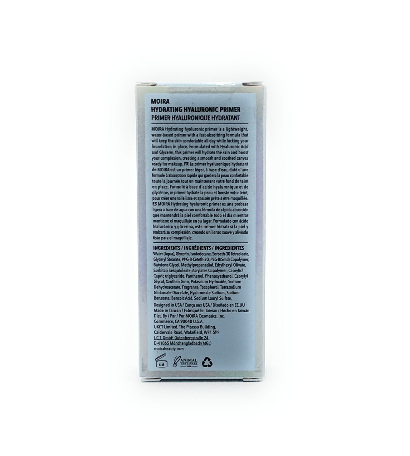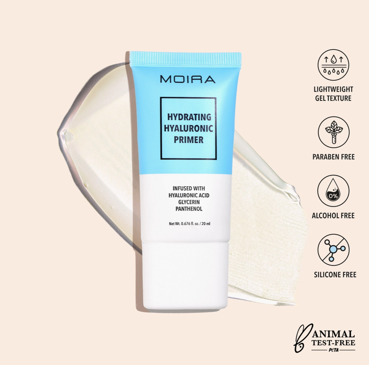 Achieve a flawless, long-lasting makeup look with MOIRA Hydrating Hyaluronic Primer. This water-based primer, enriched with Hyaluronic Acid and Glycerin, provides ultimate hydration to the skin while ensuring your foundation stays put all day. Experience a smooth and hydrated complexion, perfect for any makeup application.