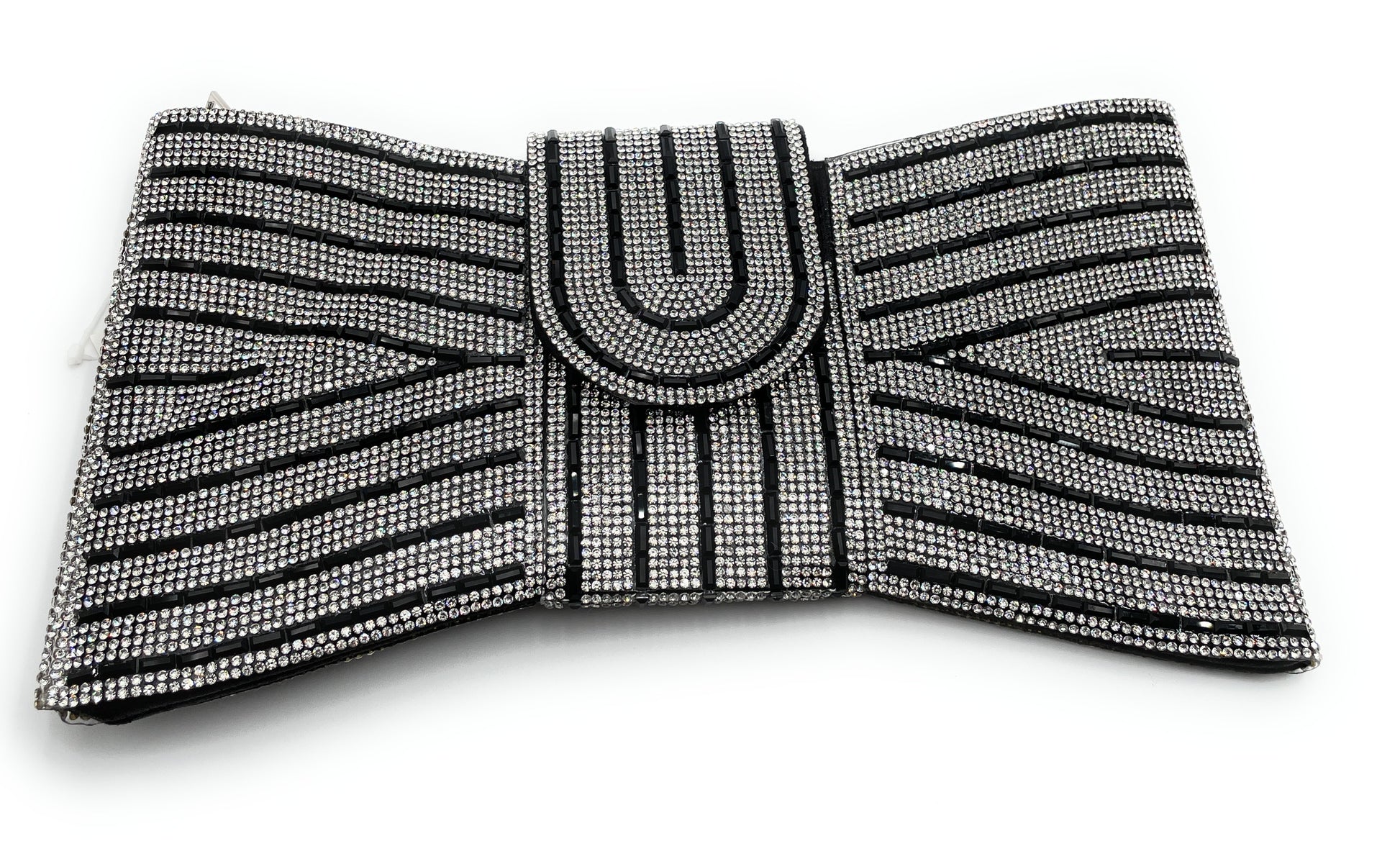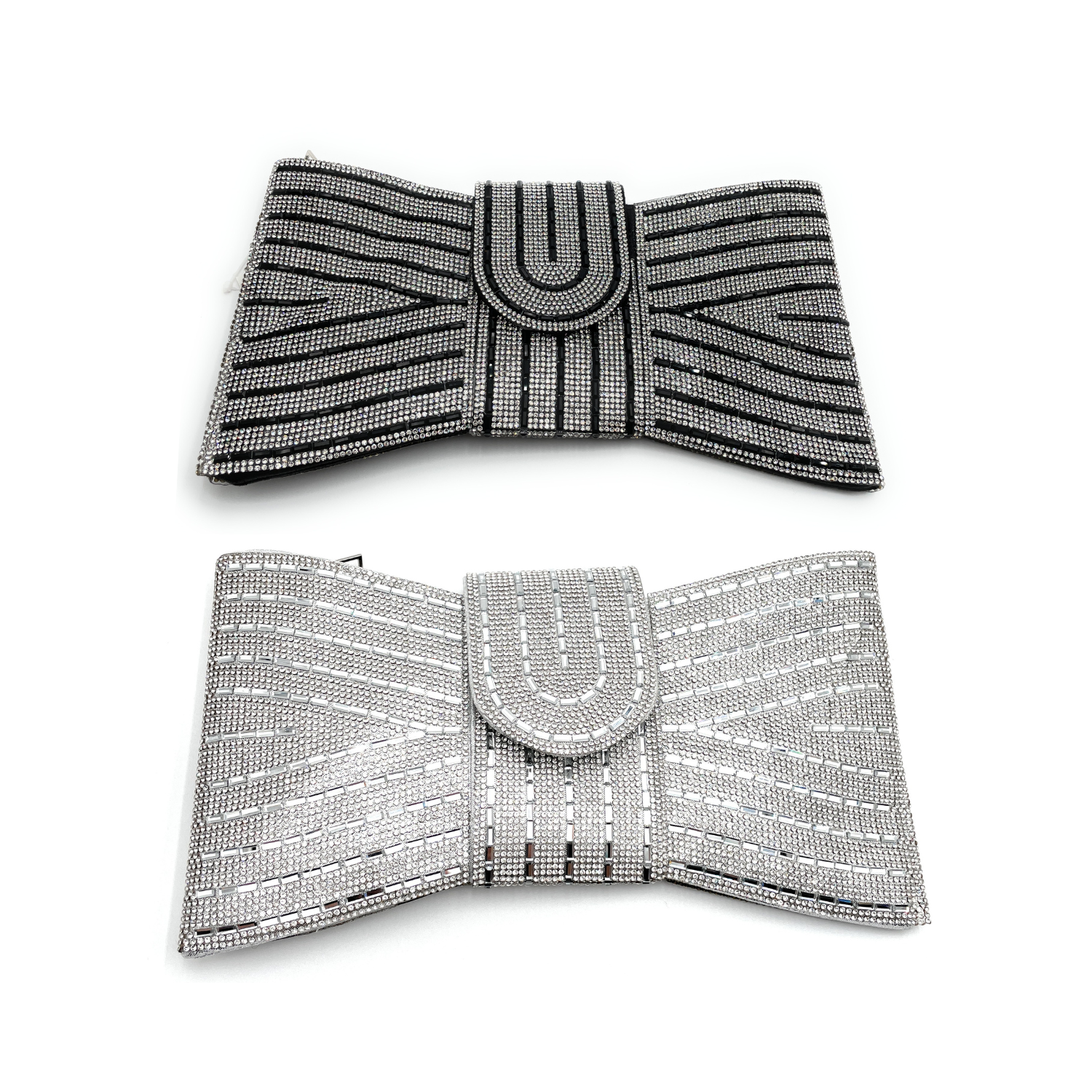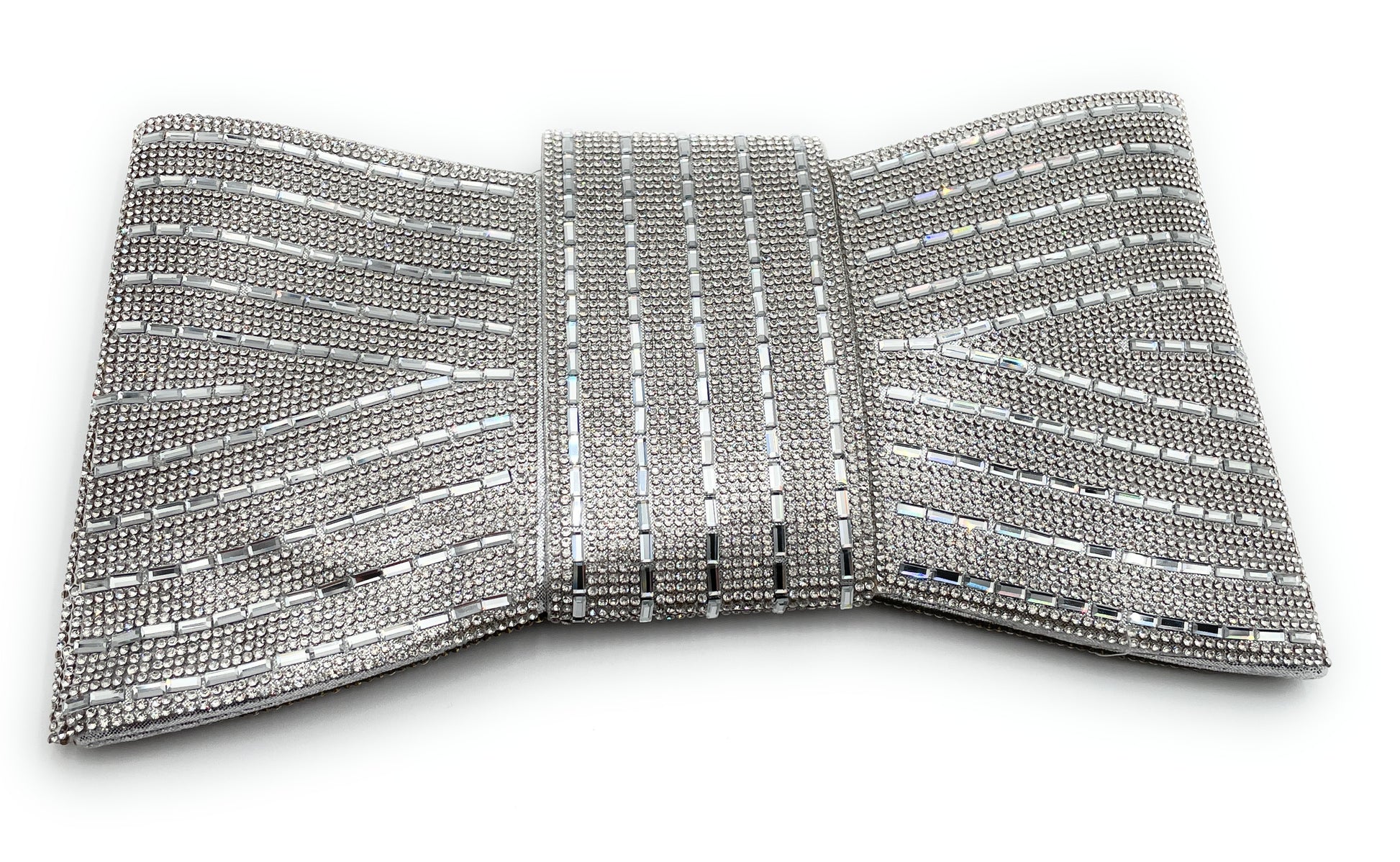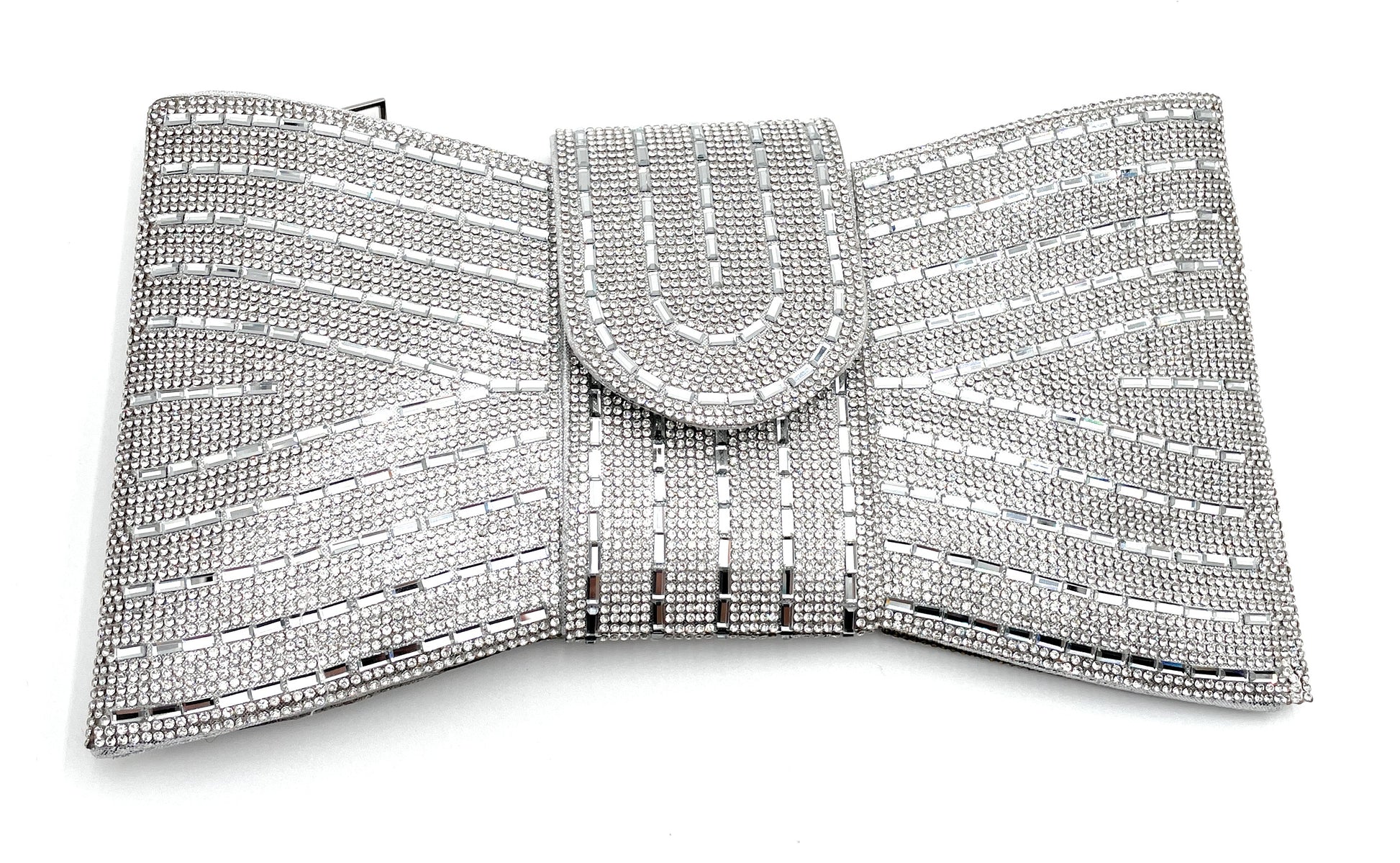 Evening Rhinestone Bar Pattern Bowtie Clutch Bag