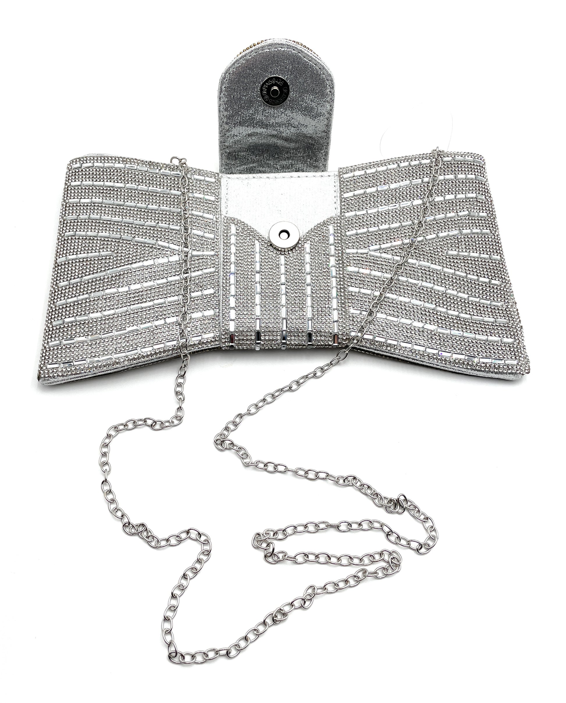 Add a touch of elegance and glamour to any occasion with our Rhinestone Bar Pattern Bowtie Clutch Bag. Perfect for weddings, proms, and parties, this sophisticated bag is a must-have accessory for any special event. The rhinestone bar pattern adds a luxurious touch, while the bowtie design adds a chic and stylish element. Elevate your look with this exclusive and tasteful clutch bag.