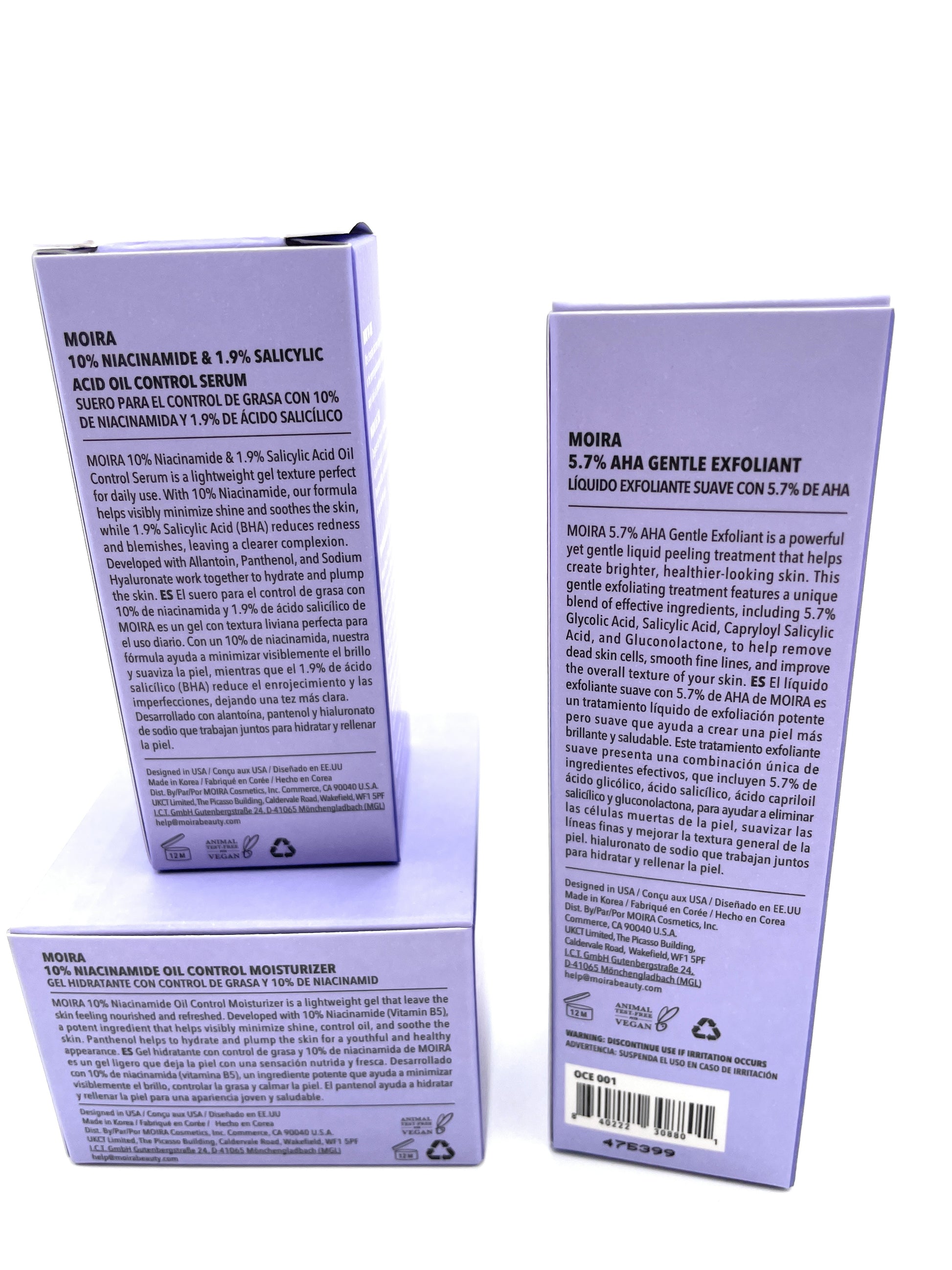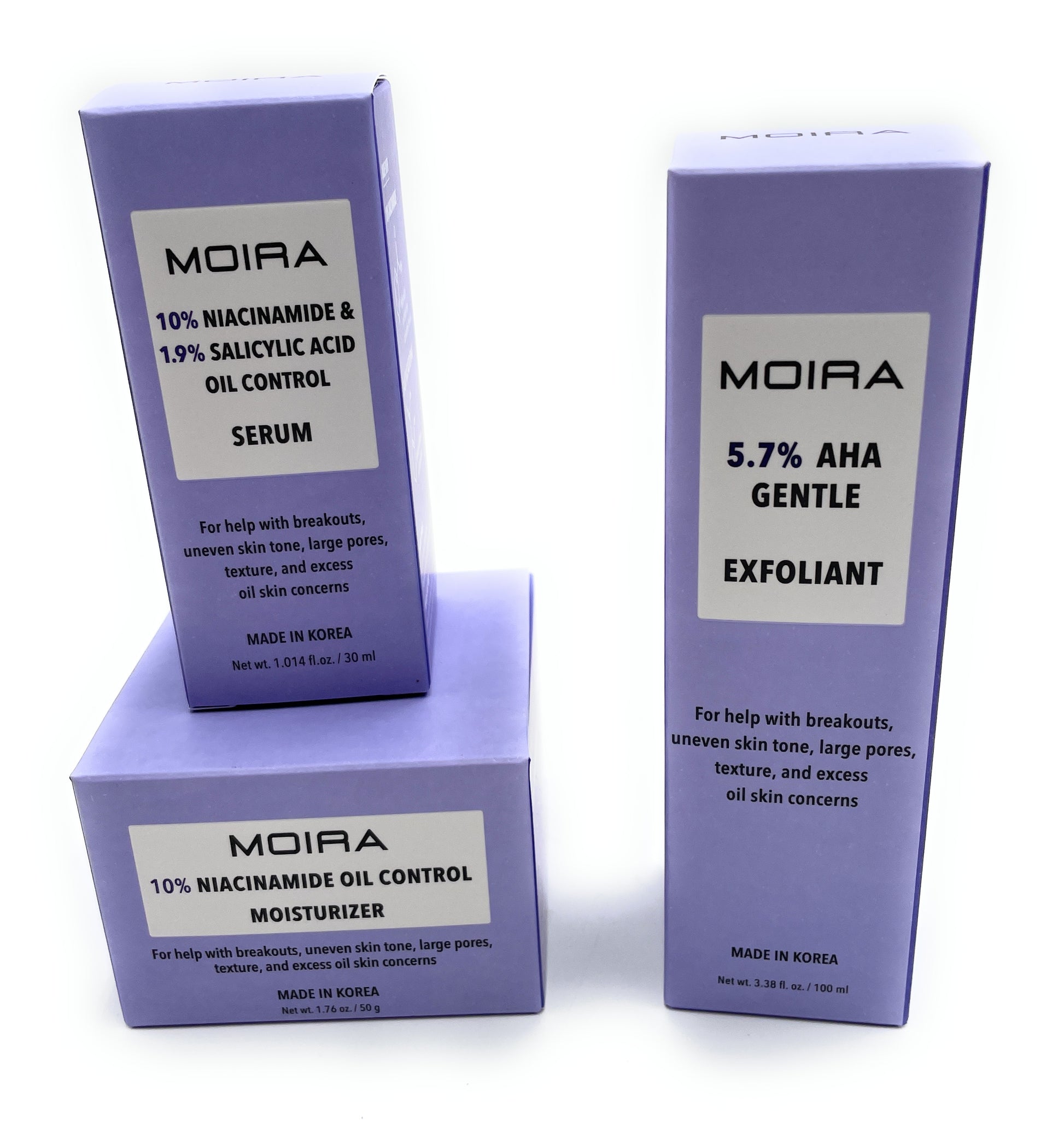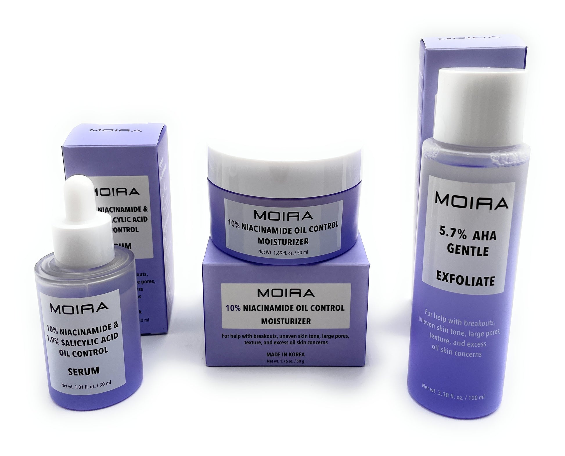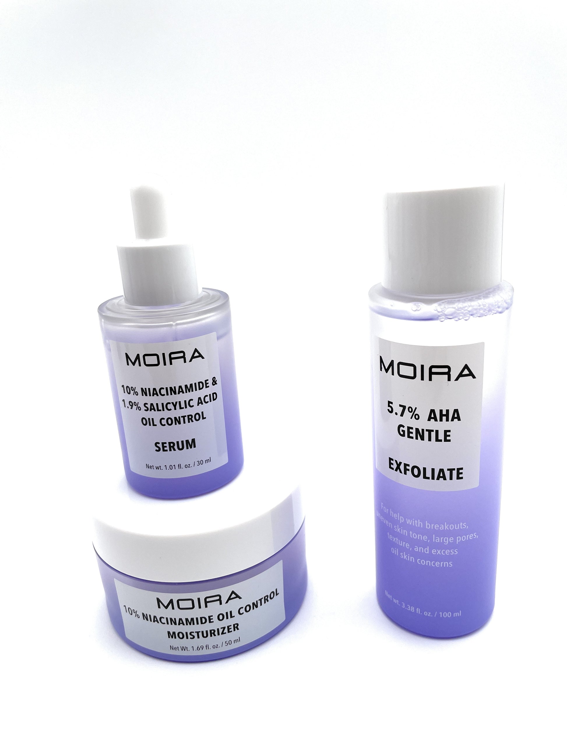 Skin Care Set - Moira Face Niacinamide Oil Control Moisturizer, Serum, Exfoliant