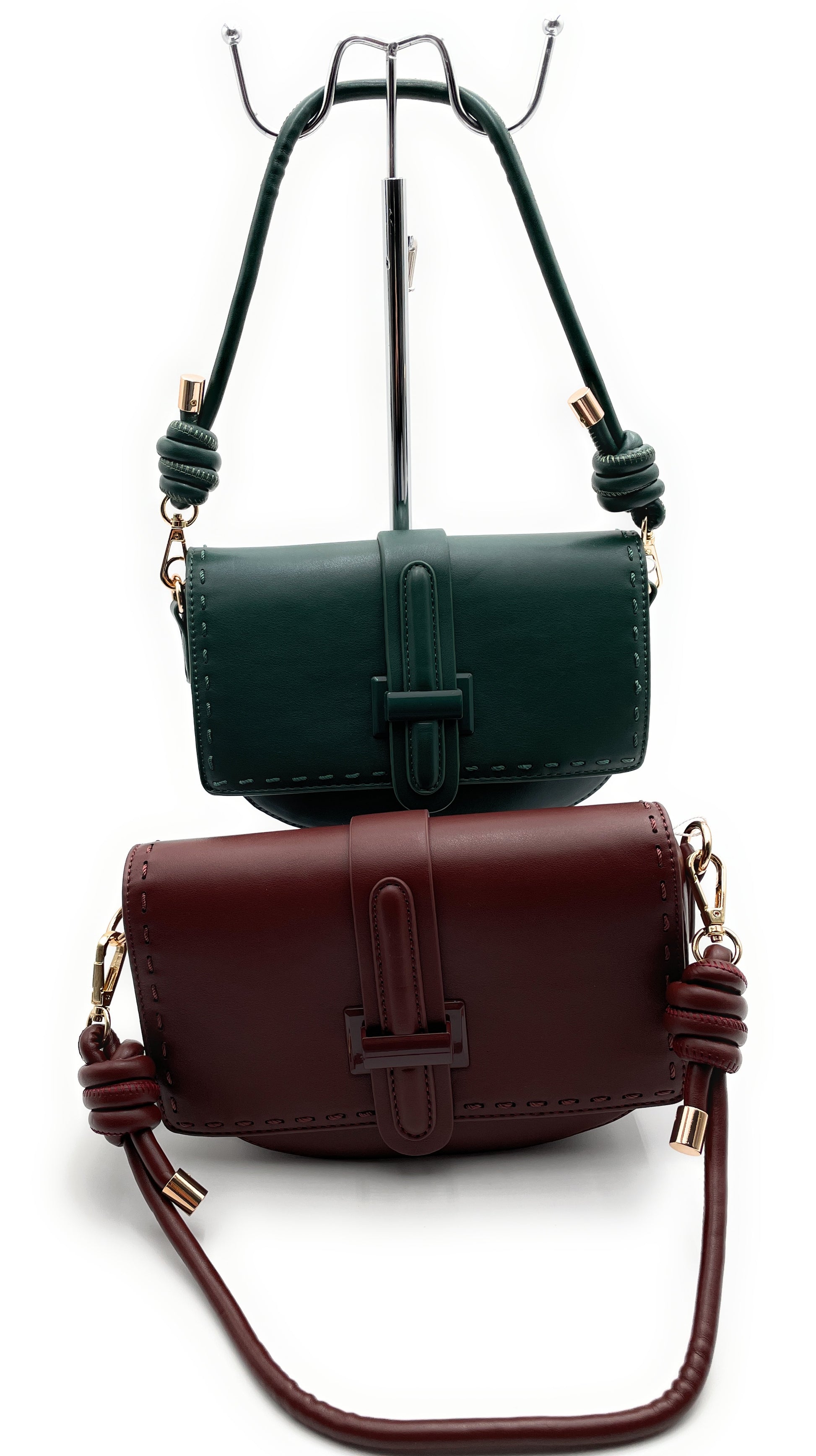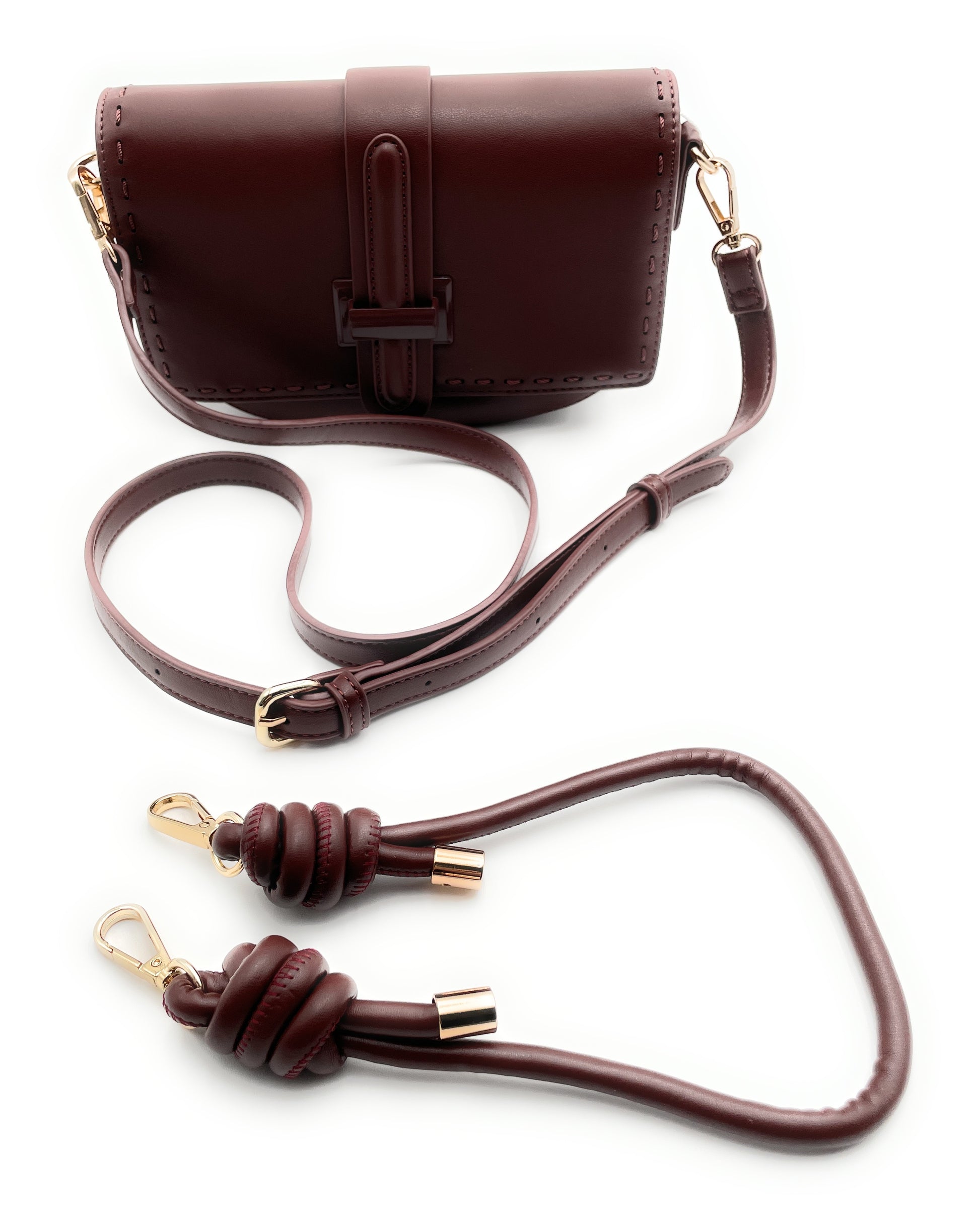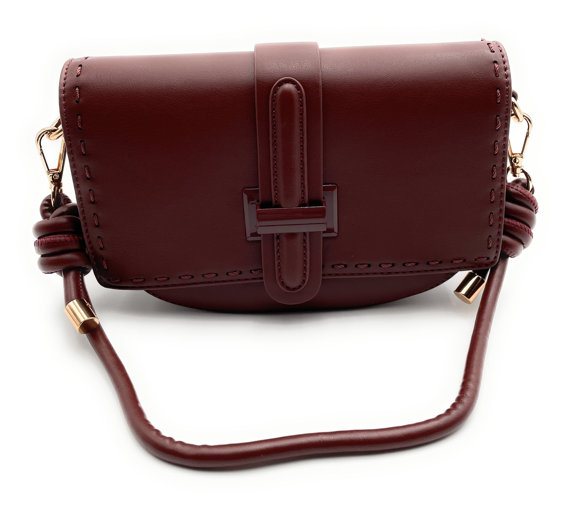 Make a statement with the Whipstitch Knotted Crossbody Bag. This smooth vegan leather bag features classic whipstitched knots and a Norah shape for a modern yet timeless look. With a snap closure, back pocket, and printed lined interior, it's the perfect companion for all your adventures. Embrace effortless style and inspiring design!