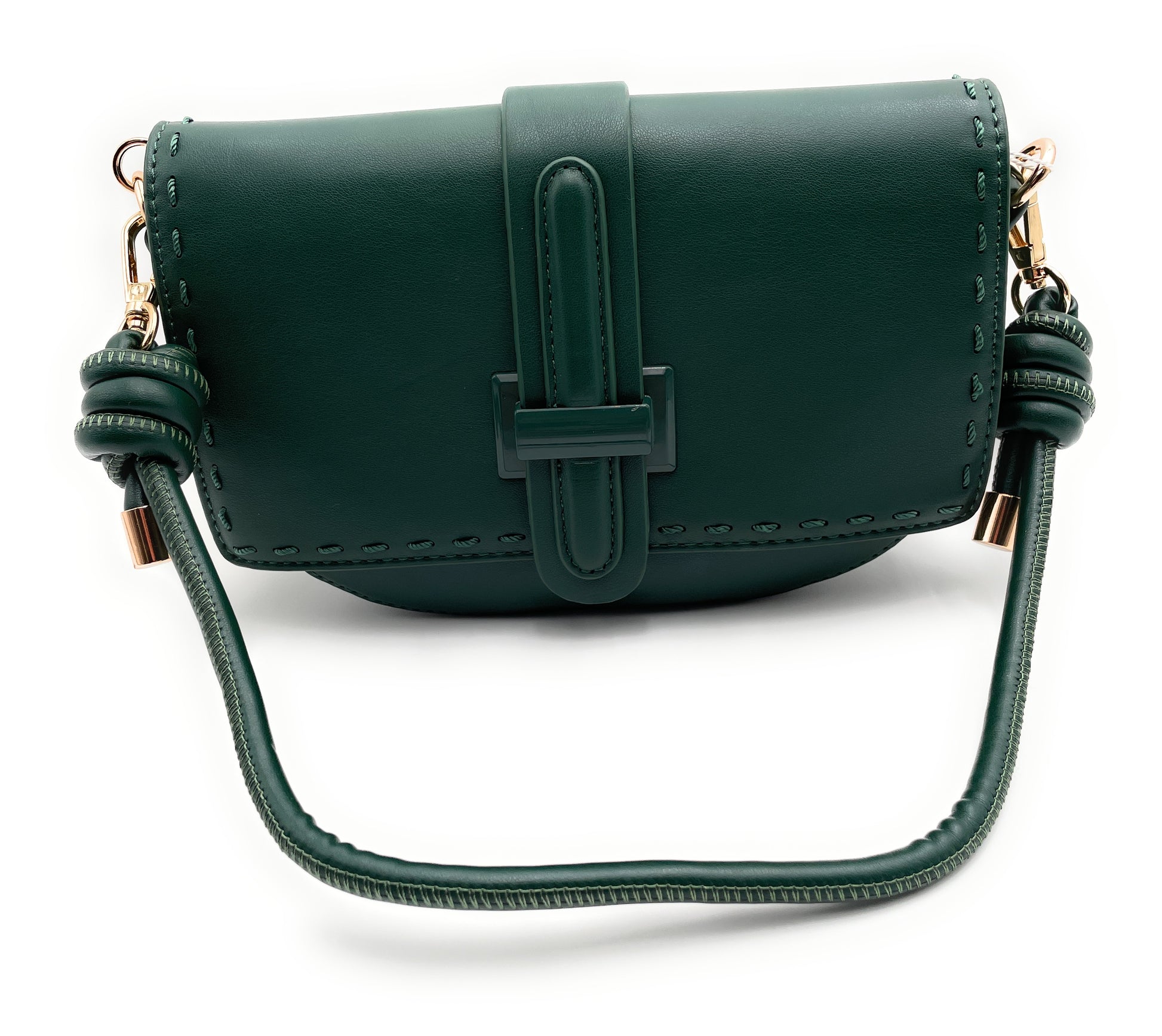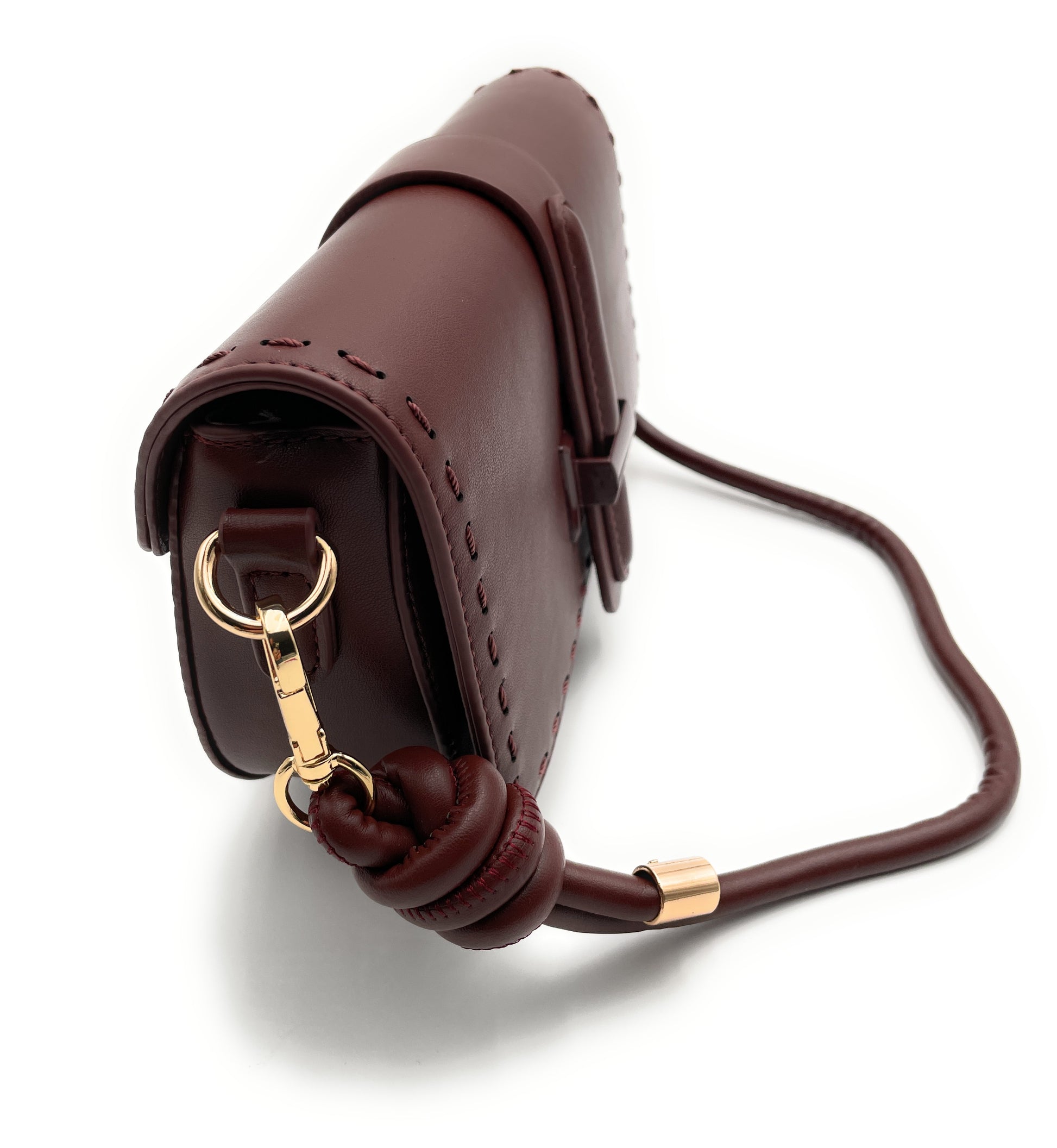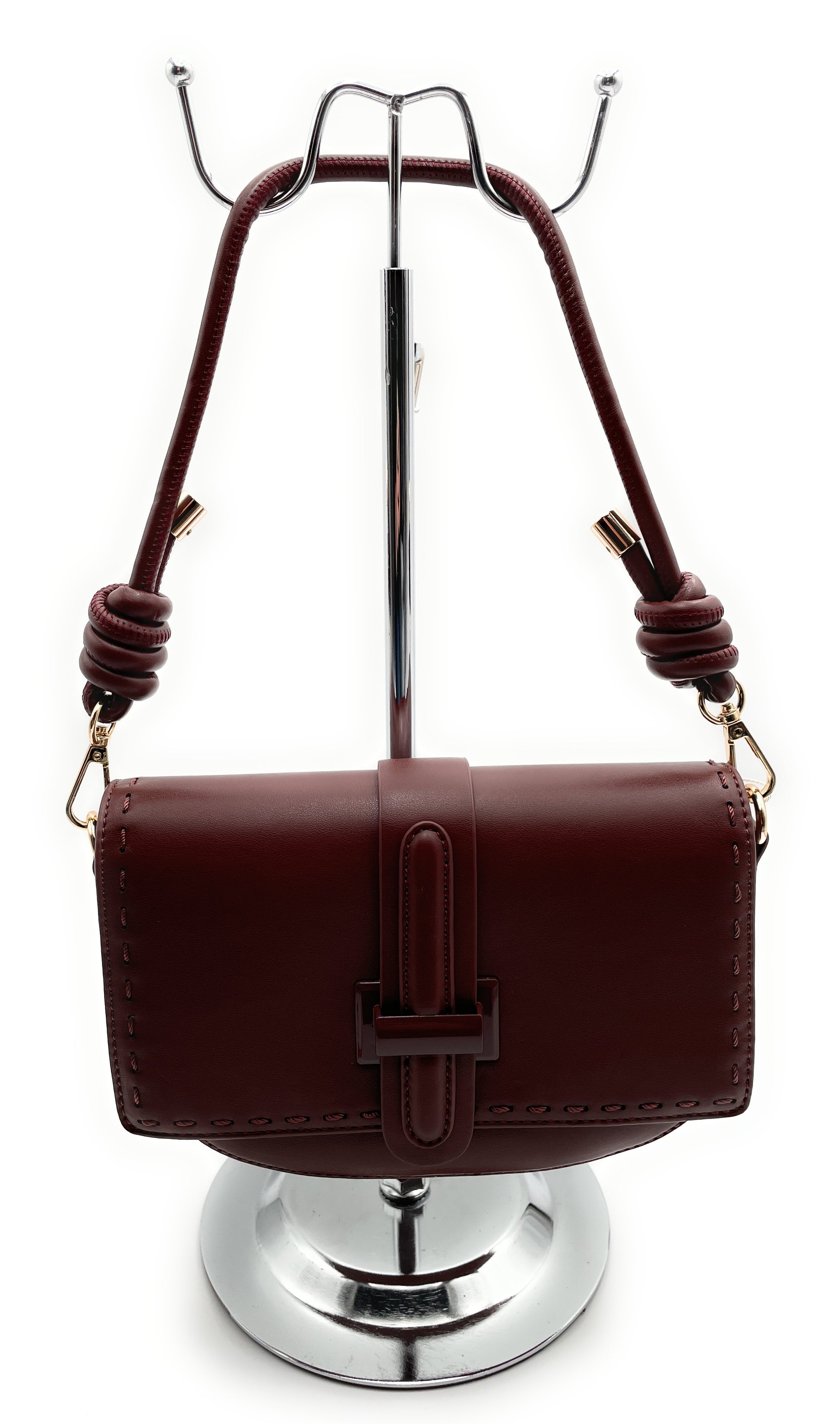 Make a statement with the Whipstitch Knotted Crossbody Bag. This smooth vegan leather bag features classic whipstitched knots and a Norah shape for a modern yet timeless look. With a snap closure, back pocket, and printed lined interior, it's the perfect companion for all your adventures. Embrace effortless style and inspiring design!