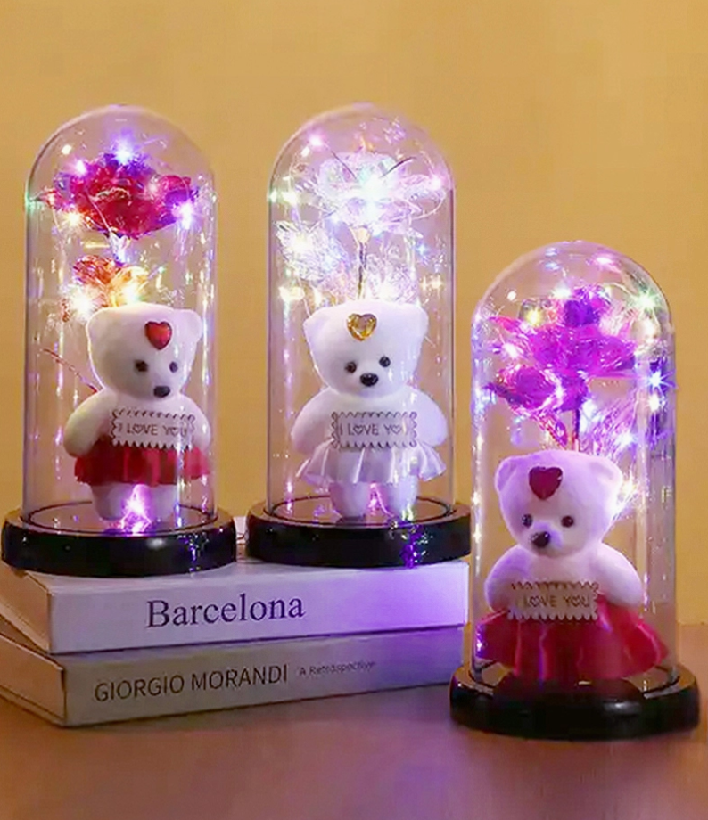 Teddy Bear Galaxy Rose Glass Dome Led Light