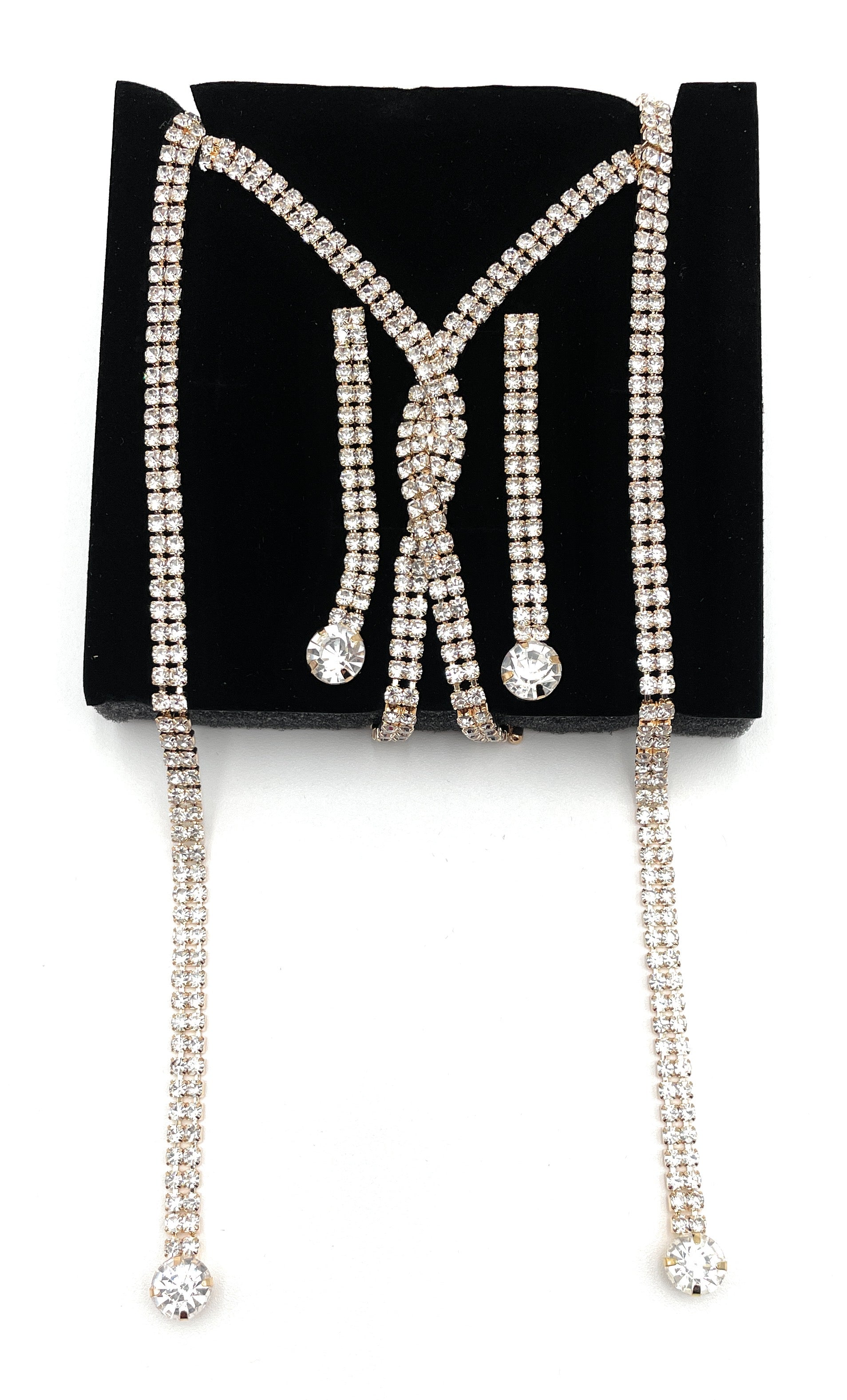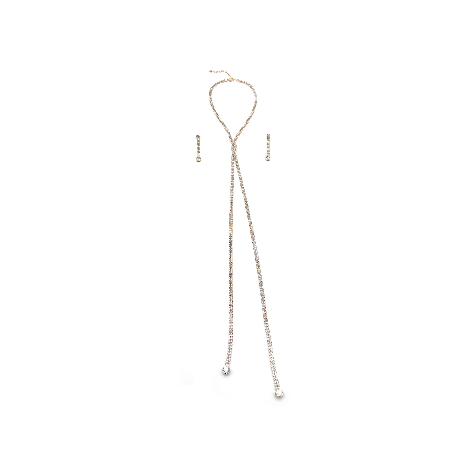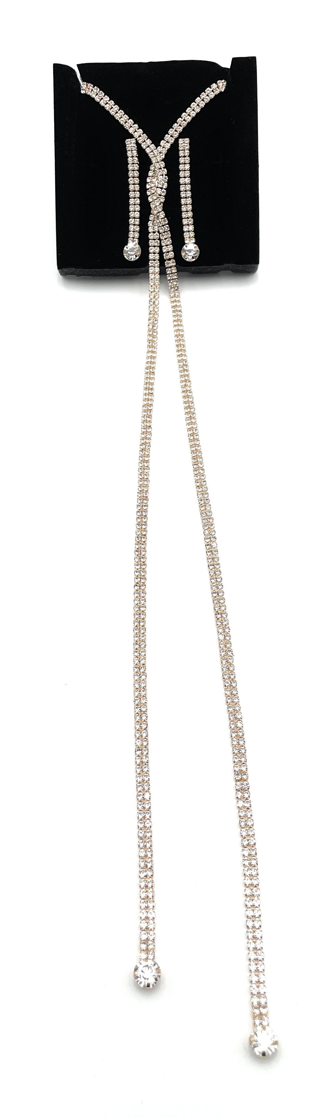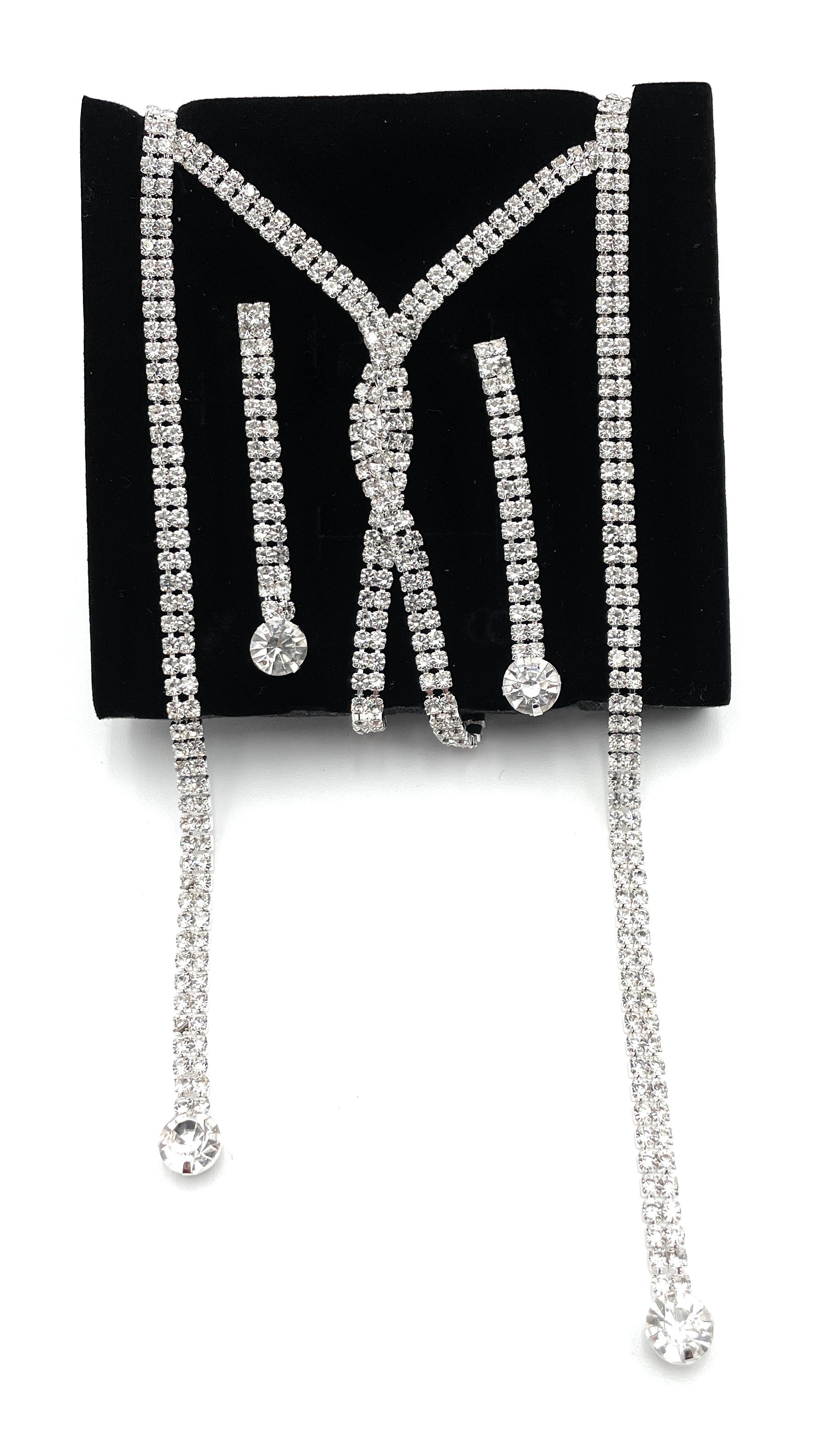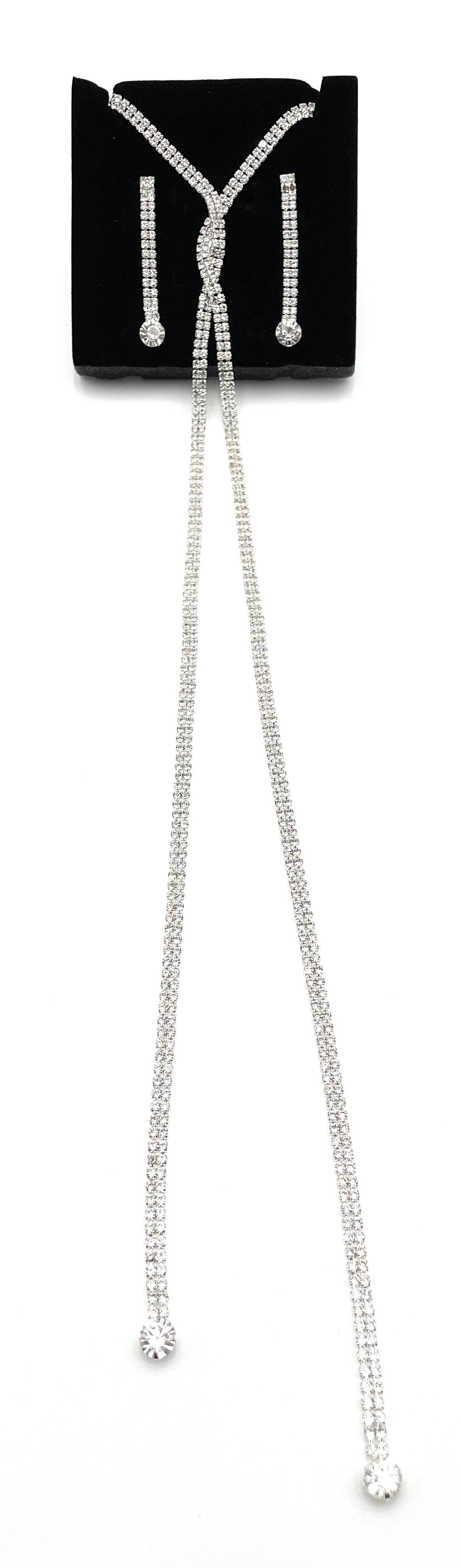 Two Line Rhinestone Twist Y Necklace with Earrings