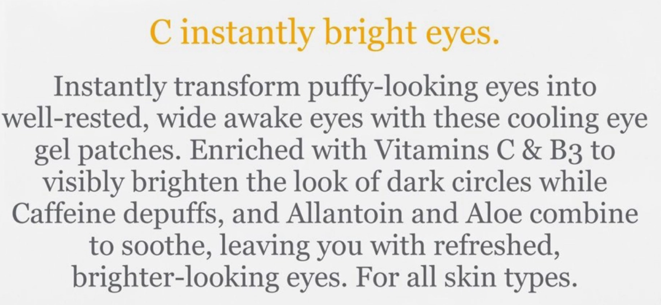 Eye Patch - Vitamin C Bright Eyes Hydro Gel Patches Allantoin Caffeine Vitamin B3, Depuffs brightens dark circles